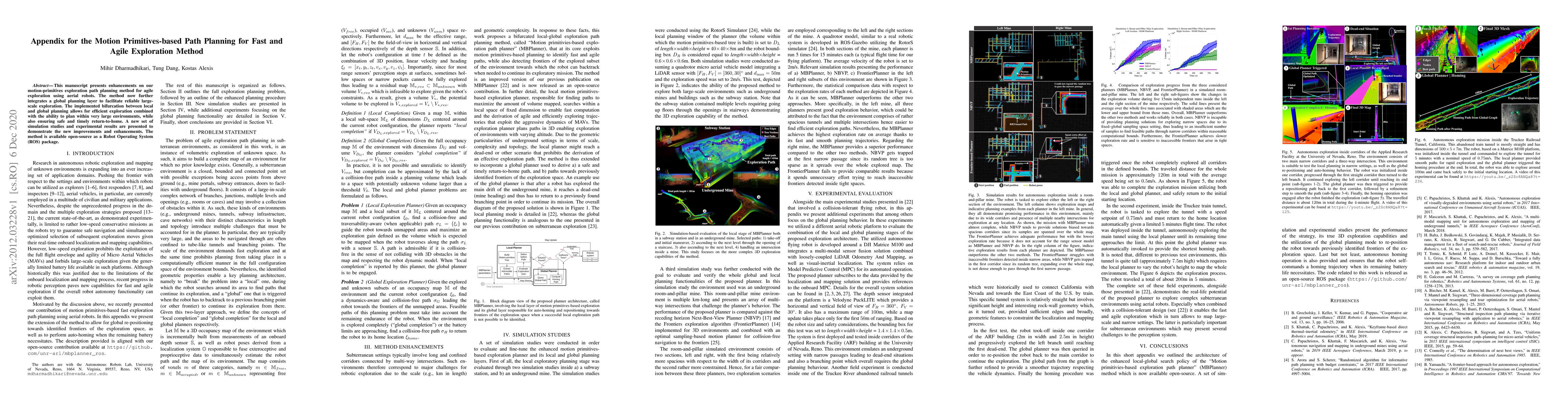 This manuscript presents enhancements on our motion-primitives exploration path planning method for agile exploration using aerial robots. The method now further integrates a global planning layer to facilitate reliable large-scale exploration. The implemented bifurcation between local and global planning allows for efficient exploration combined with the ability to plan within very large environments, while also ensuring safe and timely return-to-home. A new set of simulation studies and experimental results are presented to demonstrate the new improvements and enhancements. The method is available open source as a Robot Operating System (ROS) package.