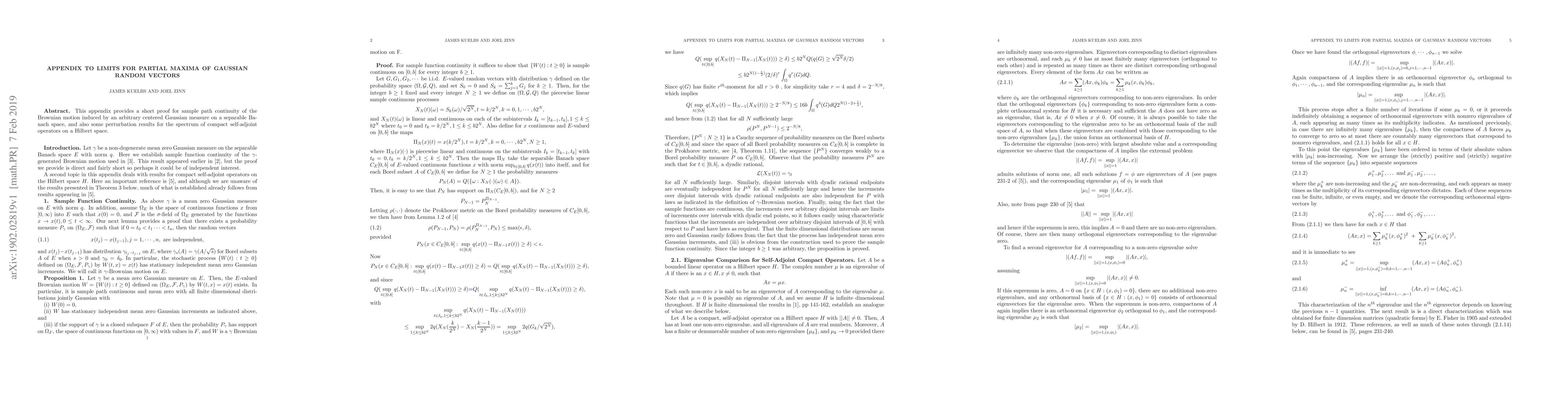 This appendix provides a short proof for sample path continuity of the Brownian motion induced by an arbitrary centered Gaussian measure on a separable Banach space, and also some perturbation results for the spectrum of compact self-adjoint operators on a Hilbert space.