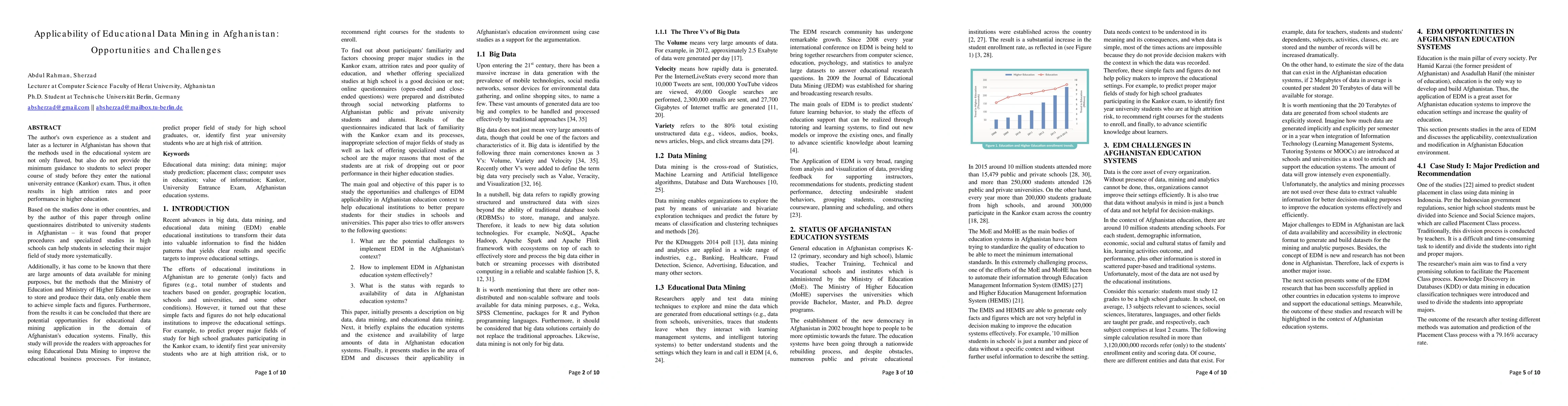 This paper explores the potential of educational data mining to improve Afghanistan's educational system, highlighting flaws in current methods and high attrition rates. It suggests that data mining can help students select appropriate majors and identify at-risk students, offering promising opportunities for enhancing educational outcomes.