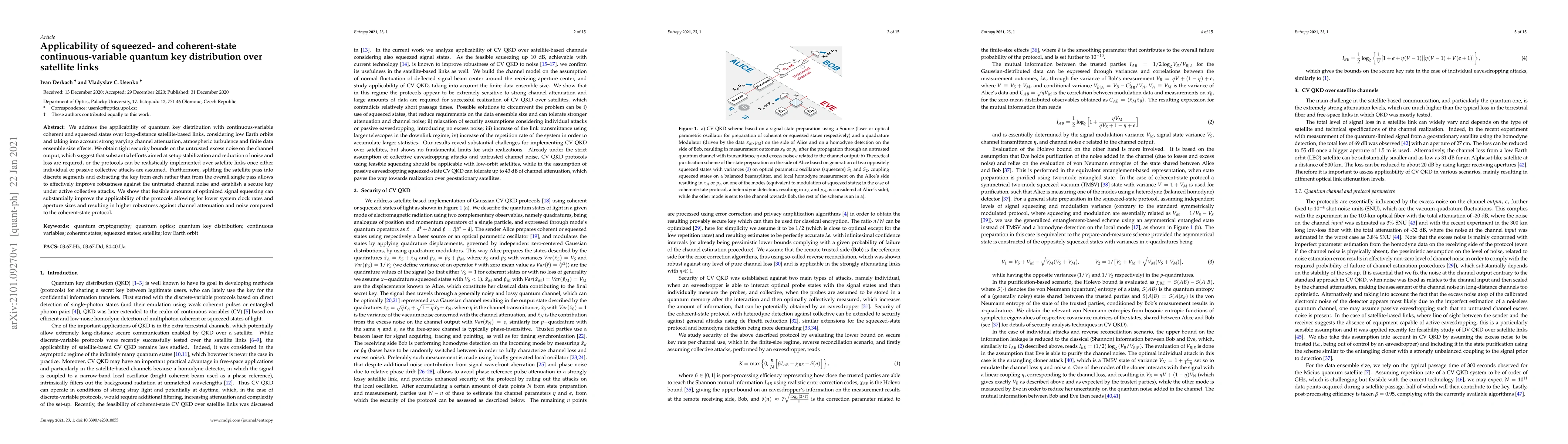 This paper investigates the feasibility of continuous-variable quantum key distribution using squeezed and coherent states over satellite links, highlighting the challenges posed by channel noise and atmospheric turbulence. It proposes segmenting satellite passes to improve security and demonstrates that optimized signal squeezing can enhance robustness and reduce system requirements.