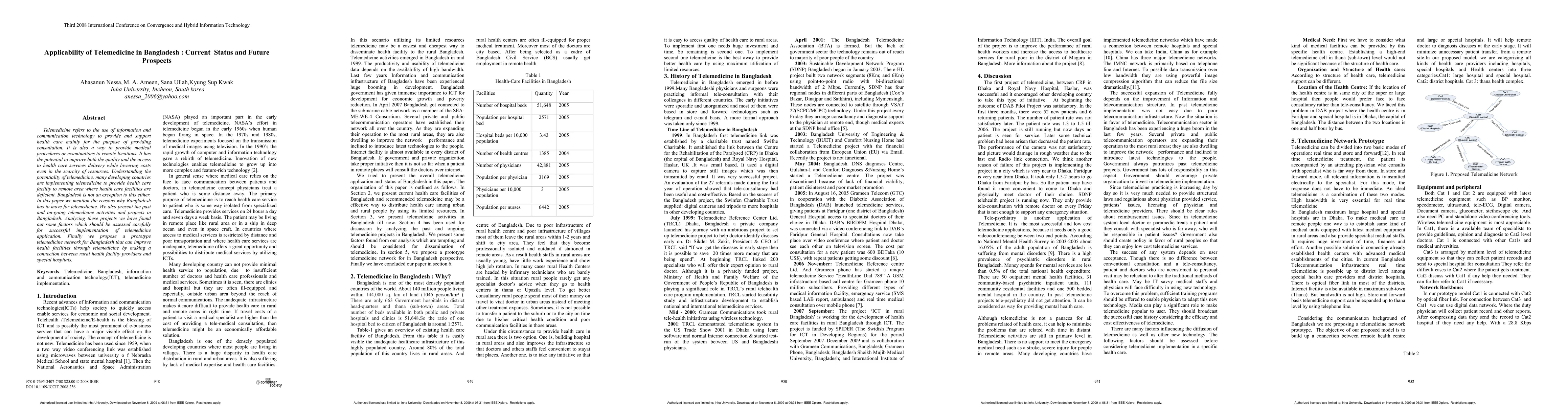 Telemedicine refers to the use of information and communication technology to provide and support health care mainly for the purpose of providing consultation. It is also a way to provide medical procedures or examinations to remote locations. It has the potential to improve both the quality and the access to health care services delivery while lowering costs even in the scarcity of resources. Understanding the potentiality of telemedicine, many developing countries are implementing telemedicine to provide health care facility to remote area where health care facilities are deficient. Bangladesh is not an exception to this either. In this paper we mention the reasons why Bangladesh has to move for telemedicine. We also present the past and on-going telemedicine activities and projects in Bangladesh. Analyzing these projects we have found out some factors which should be assessed carefully for successful implementation of telemedicine application. Finally we propose a prototype telemedicine network for Bangladesh that can improve health facilities through telemedicine by making a connection between rural health facility providers and special hospitals.