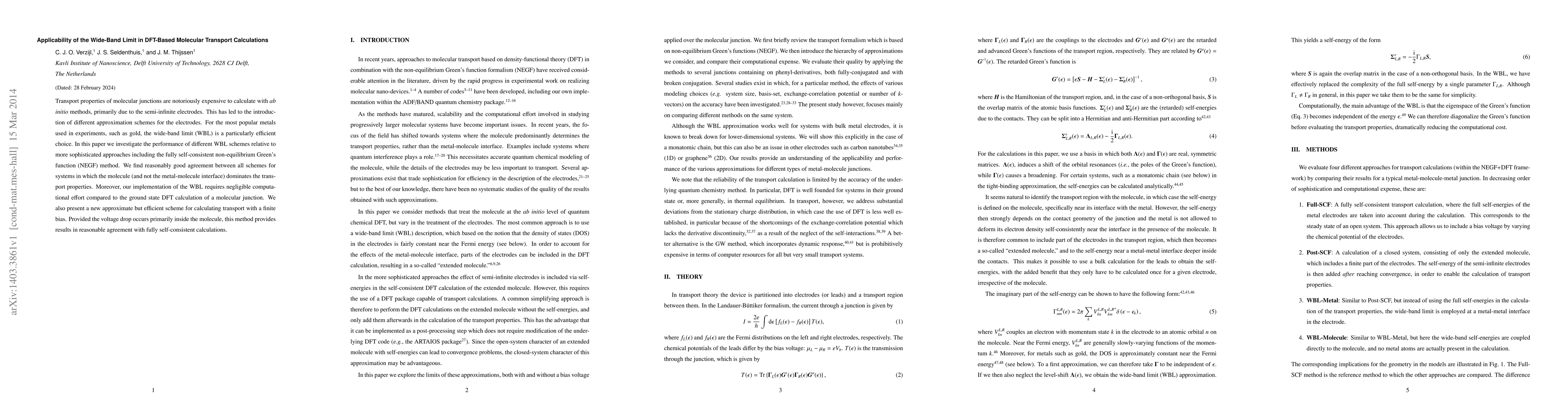 Transport properties of molecular junctions are notoriously expensive to calculate with ab initio methods, primarily due to the semi-infinite electrodes. This has led to the introduction of different approximation schemes for the electrodes. For the most popular metals used in experiments, such as gold, the wide-band limit (WBL) is a particularly efficient choice. In this paper we investigate the performance of different WBL schemes relative to more sophisticated approaches including the fully self-consistent non-equilibrium Green's function (NEGF) method. We find reasonably good agreement between all schemes for systems in which the molecule (and not the metal-molecule interface) dominates the transport properties. Moreover, our implementation of the WBL requires negligible computational effort compared to the ground state DFT calculation of a molecular junction. We also present a new approximate but efficient scheme for calculating transport with a finite bias. Provided the voltage drop occurs primarily inside the molecule, this method provides results in reasonable agreement with fully self-consistent calculations.