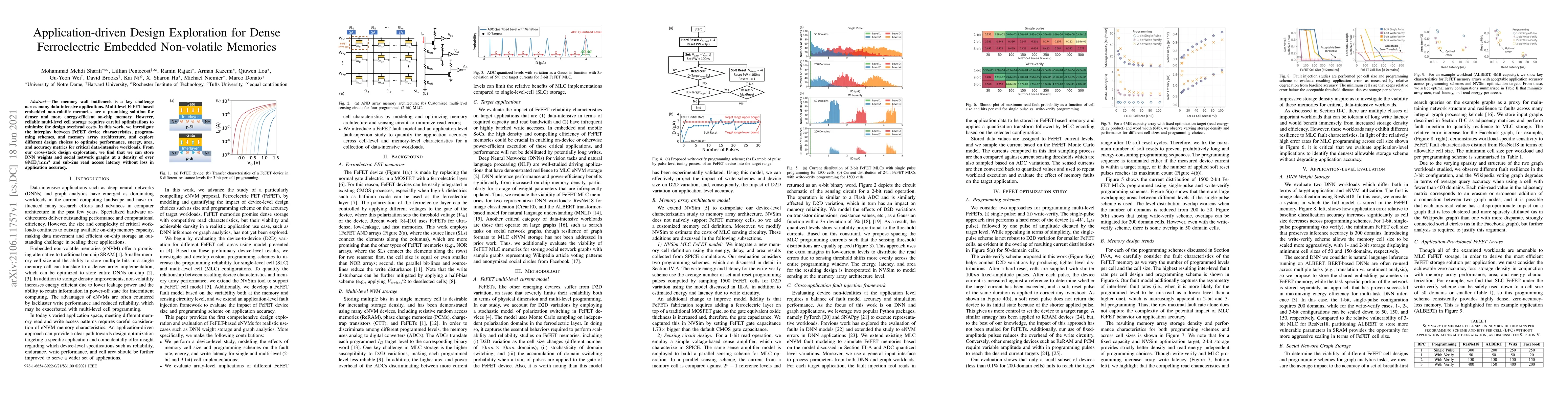 This paper explores the design optimization of dense ferroelectric embedded non-volatile memories (FeFET) to overcome the memory wall bottleneck in data-intensive applications. It investigates various design choices to balance performance, energy, area, and accuracy, achieving high density and low latency for storing DNN weights and social network graphs.
