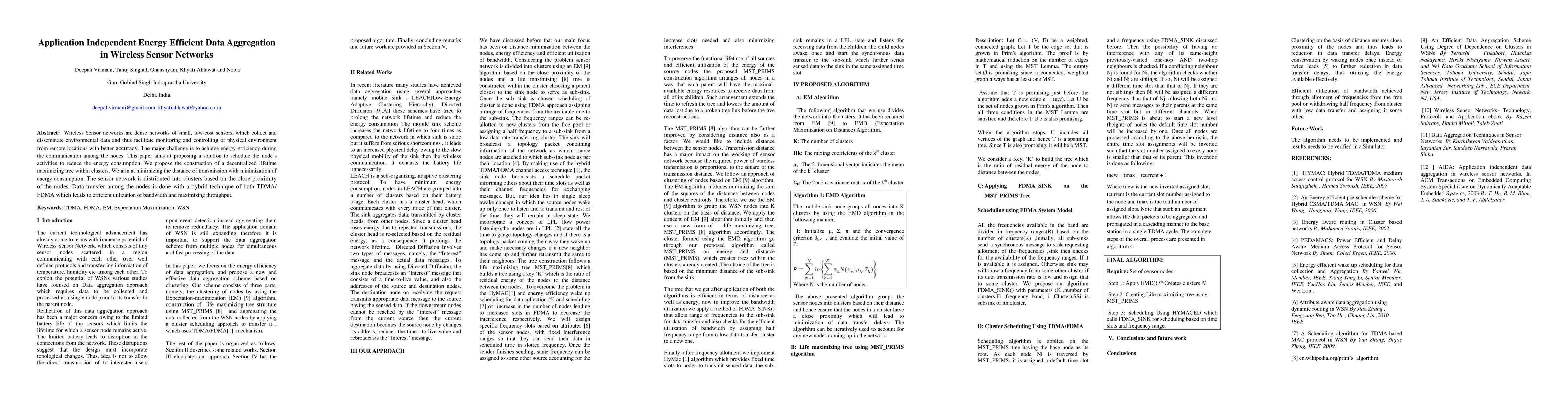 Wireless Sensor networks are dense networks of small, low-cost sensors, which collect and disseminate environmental data and thus facilitate monitoring and controlling of physical environment from remote locations with better accuracy. The major challenge is to achieve energy efficiency during the communication among the nodes. This paper aims at proposing a solution to schedule the node's activities to reduce the energy consumption. We propose the construction of a decentralized lifetime maximizing tree within clusters. We aim at minimizing the distance of transmission with minimization of energy consumption. The sensor network is distributed into clusters based on the close proximity of the nodes. Data transfer among the nodes is done with a hybrid technique of both TDMA/ FDMA which leads to efficient utilization of bandwidth and maximizing throughput.