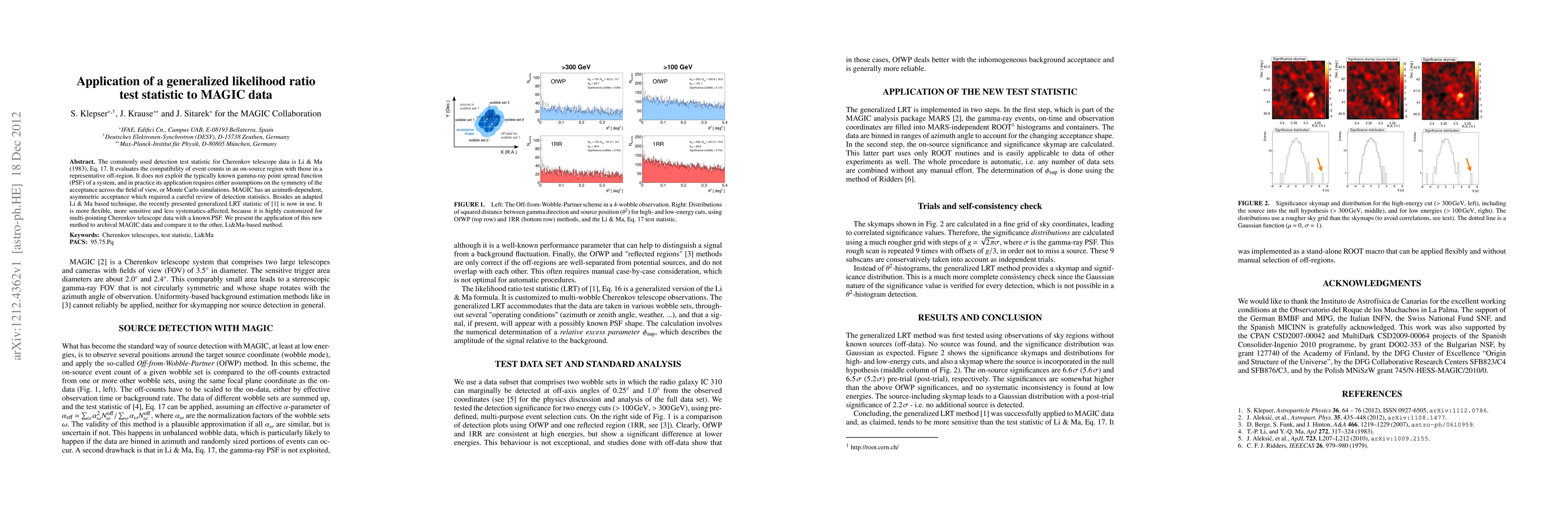 Researchers applied a new detection test statistic to MAGIC data, which is more flexible, sensitive, and less systematics-affected than the traditional Li & Ma method, offering improved results for multi-pointing Cherenkov telescope data.