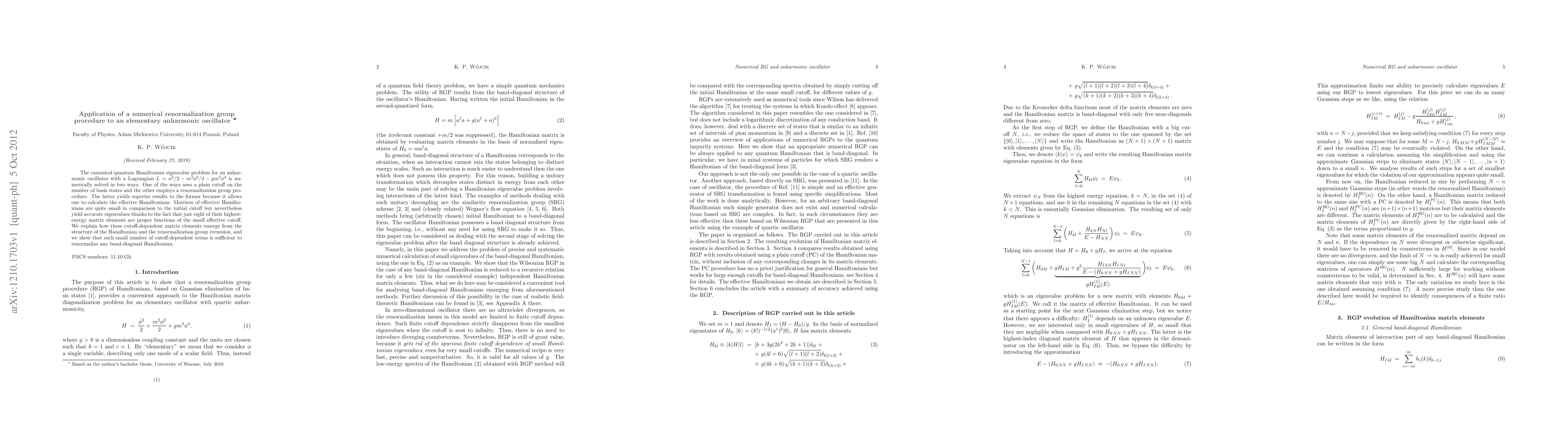 The canonical quantum Hamiltonian eigenvalue problem for an anharmonic oscillator with a Lagrangian L = \dot{\phi}^2/2 - m^2 \phi^2/2 - g m^3 \phi^4 is numerically solved in two ways. One of the ways uses a plain cutoff on the number of basis states and the other employs a renormalization group procedure. The latter yields superior results to the former because it allows one to calculate the effective Hamiltonians. Matrices of effective Hamiltonians are quite small in comparison to the initial cutoff but nevertheless yield accurate eigenvalues thanks to the fact that just eight of their highest-energy matrix elements are proper functions of the small effective cutoff. We explain how these cutoff-dependent matrix elements emerge from the structure of the Hamiltonian and the renormalization group recursion, and we show that such small number of cutoff-dependent terms is sufficient to renormalize any band-diagonal Hamiltonian.