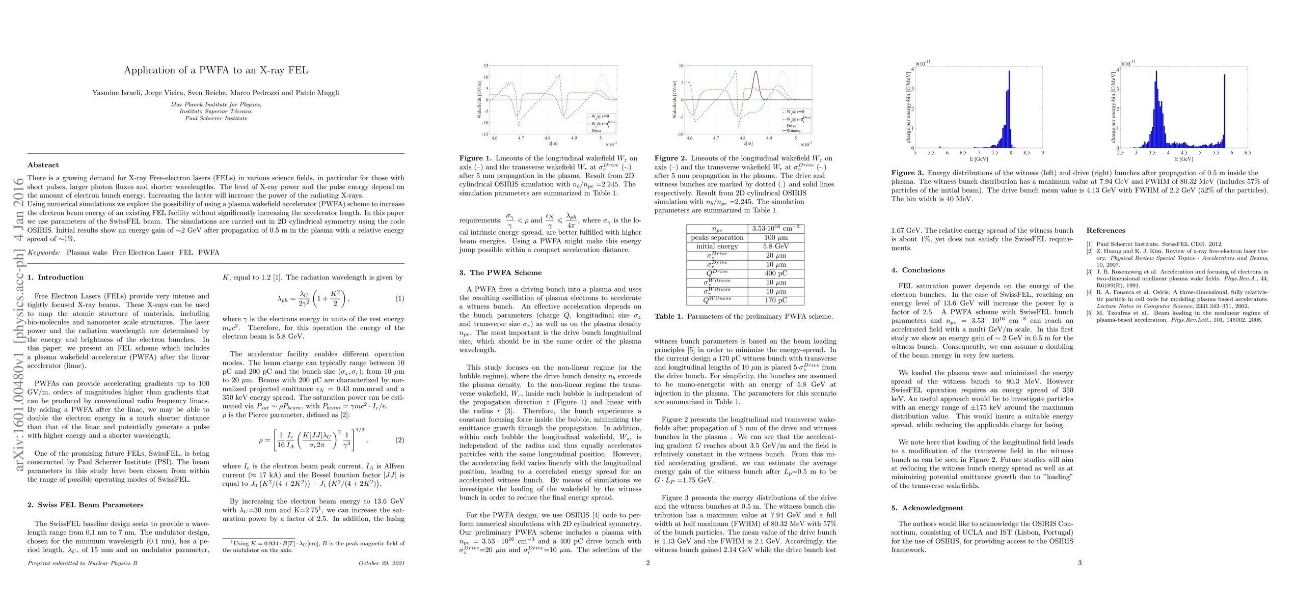 There is a growing demand for X-ray Free-electron lasers (FELs) in various science fields, in particular for those with short pulses, larger photon fluxes and shorter wavelengths. The level of X-ray power and the pulse energy depend on the amount of electron bunch energy. Increasing the latter will increase the power of the radiating X-rays. Using numerical simulations we explore the possibility of using a plasma wakefield accelerator (PWFA) scheme to increase the electron beam energy of an existing FEL facility without significantly increasing the accelerator length. In this paper we use parameters of the SwissFEL beam. The simulations are carried out in 2D cylindrical symmetry using the code OSIRIS. Initial results show an energy gain of ~2 GeV after propagation of 0.5 m in the plasma with a relative energy spread of ~1%.