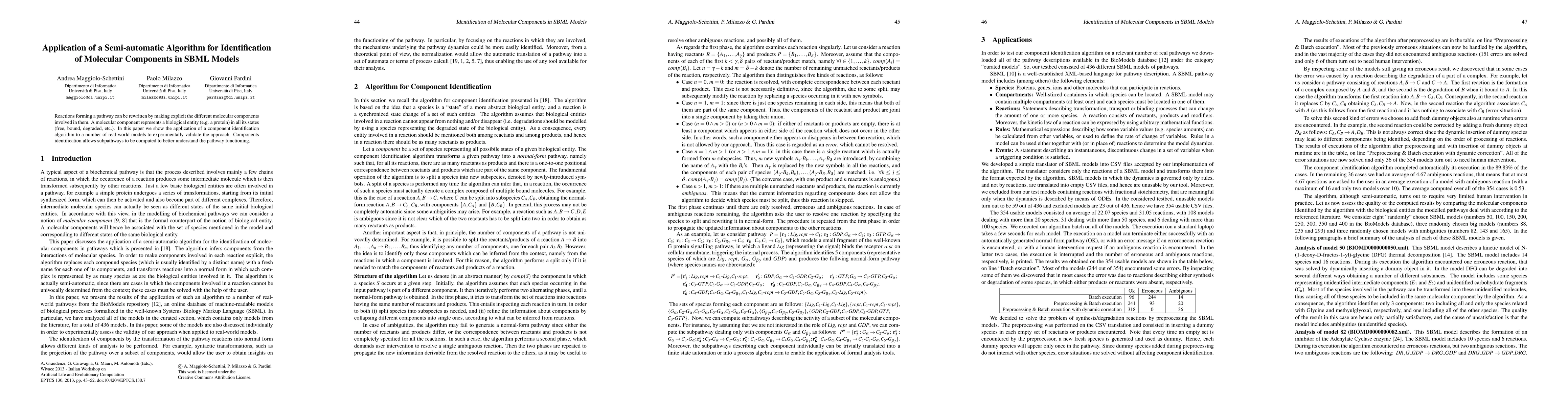 Reactions forming a pathway can be rewritten by making explicit the different molecular components involved in them. A molecular component represents a biological entity (e.g. a protein) in all its states (free, bound, degraded, etc.). In this paper we show the application of a component identification algorithm to a number of real-world models to experimentally validate the approach. Components identification allows subpathways to be computed to better understand the pathway functioning.