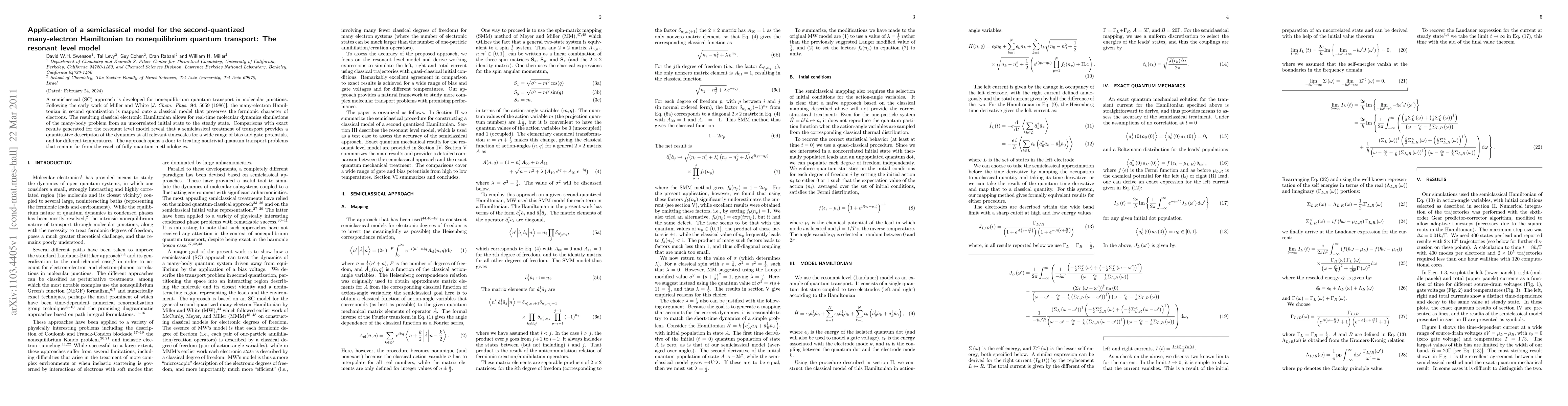 A semiclassical (SC) approach is developed for nonequilibrium quantum transport in molecular junctions. Following the early work of Miller and White [J. Chem. Phys. 84, 5059 (1986)], the many-electron Hamiltonian in second quantization is mapped onto a classical model that preserves the fermionic character of electrons. The resulting classical electronic Hamiltonian allows for real-time molecular dynamics simulations of the many-body problem from an uncorrelated initial state to the steady state. Comparisons with exact results generated for the resonant level model reveal that a semiclassical treatment of transport provides a quantitative description of the dynamics at all relevant timescales for a wide range of bias and gate potentials, and for different temperatures. The approach opens a door to treating nontrivial quantum transport problems that remain far from the reach of fully quantum methodologies.