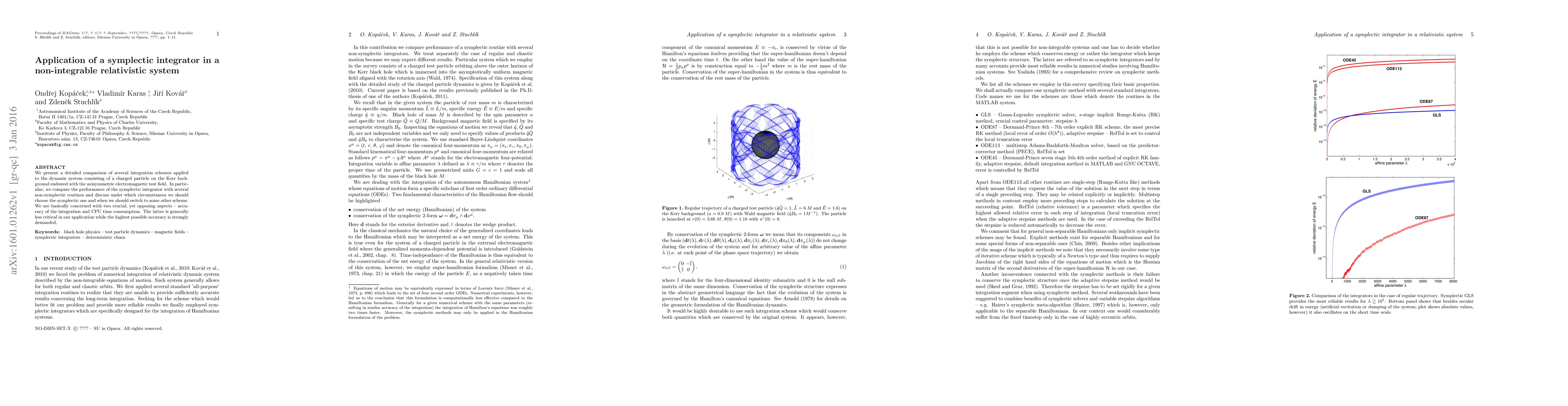 We present a detailed comparison of several integration schemes applied to the dynamic system consisting of a charged particle on the Kerr background endowed with the axisymmetric electromagnetic test field. In particular, we compare the performance of the symplectic integrator with several non-symplectic routines and discuss under which circumstances we should choose the symplectic one and when we should switch to some other scheme. We are basically concerned with two crucial, yet opposing aspects - accuracy of the integration and CPU time consumption. The latter is generally less critical in our application while the highest possible accuracy is strongly demanded.