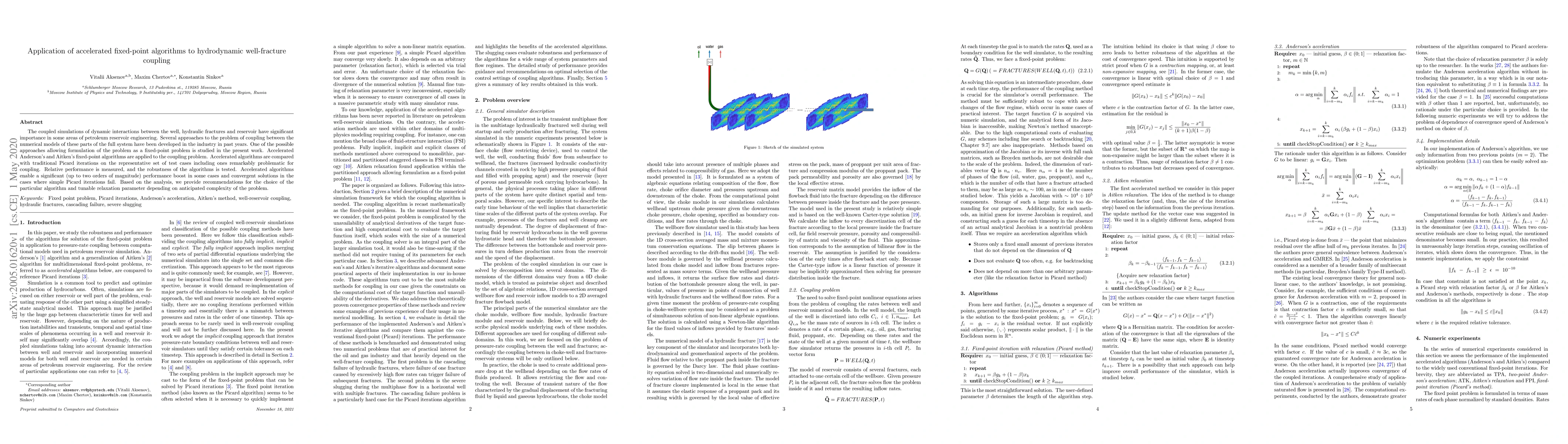 The coupled simulations of dynamic interactions between the well, hydraulic fractures and reservoir have significant importance in some areas of petroleum reservoir engineering. Several approaches to the problem of coupling between the numerical models of these parts of the full system have been developed in the industry in past years. One of the possible approaches allowing formulation of the problem as a fixed-point problem is studied in the present work. Accelerated Anderson's and Aitken's fixed-point algorithms are applied to the coupling problem. Accelerated algorithms are compared with traditional Picard iterations on the representative set of test cases including ones remarkably problematic for coupling. Relative performance is measured, and the robustness of the algorithms is tested. Accelerated algorithms enable a significant (up to two orders of magnitude) performance boost in some cases and convergent solutions in the cases where simple Picard iterations fail. Based on the analysis, we provide recommendations for the choice of the particular algorithm and tunable relaxation parameter depending on anticipated complexity of the problem.
