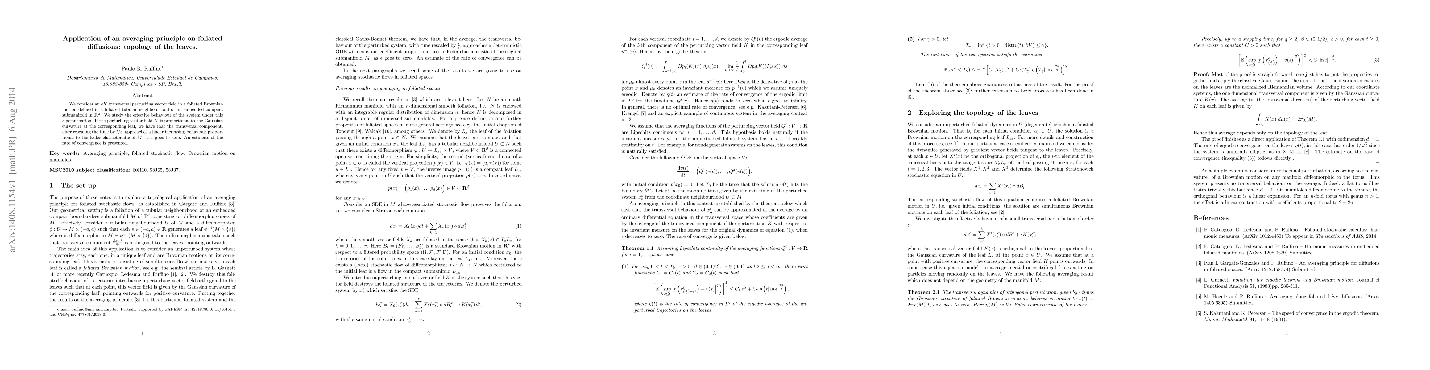 We consider an $\epsilon K$ transversal perturbing vector field in a foliated Brownian motion defined in a foliated tubular neighbourhood of an embedded compact submanifold in $\R^3$. We study the effective behaviour of the system under this $\epsilon$ perturbation. If the perturbing vector field $K$ is proportional to the Gaussian curvature at the corresponding leaf, we have that the transversal component, after rescaling the time by $t/\epsilon$, approaches a linear increasing behaviour proportional to the Euler characteristic of $M$, as $\epsilon$ goes to zero. An estimate of the rate of convergence is presented.