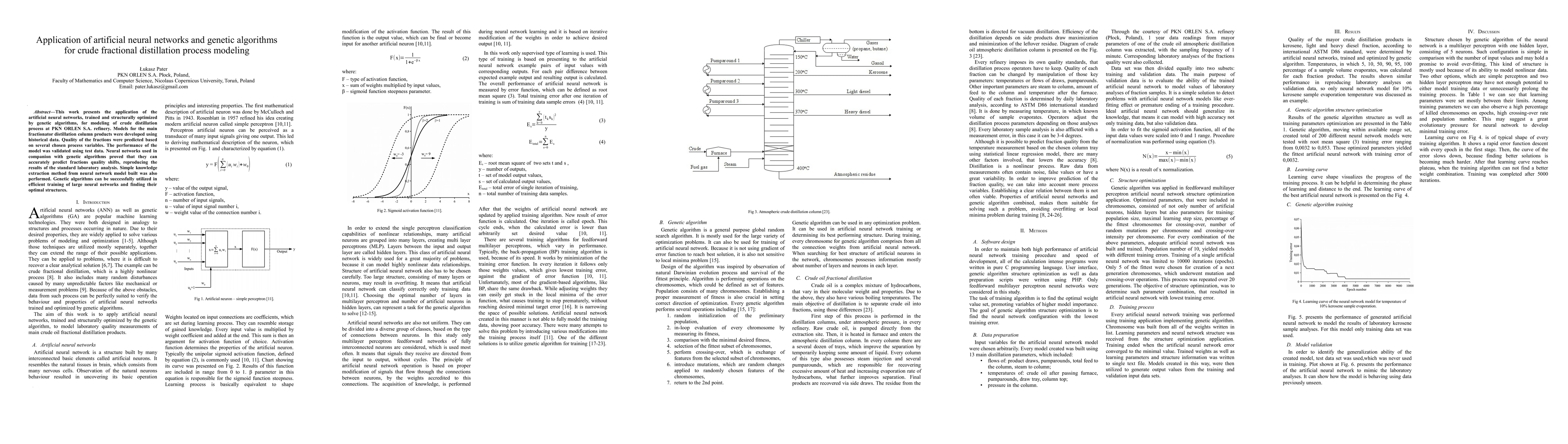 Researchers used artificial neural networks and genetic algorithms to model crude fractional distillation processes at a refinery, accurately predicting fractions quality shifts and reproducing laboratory results. The study demonstrates the potential of these methods for efficient training and optimization of large neural networks in industrial applications.