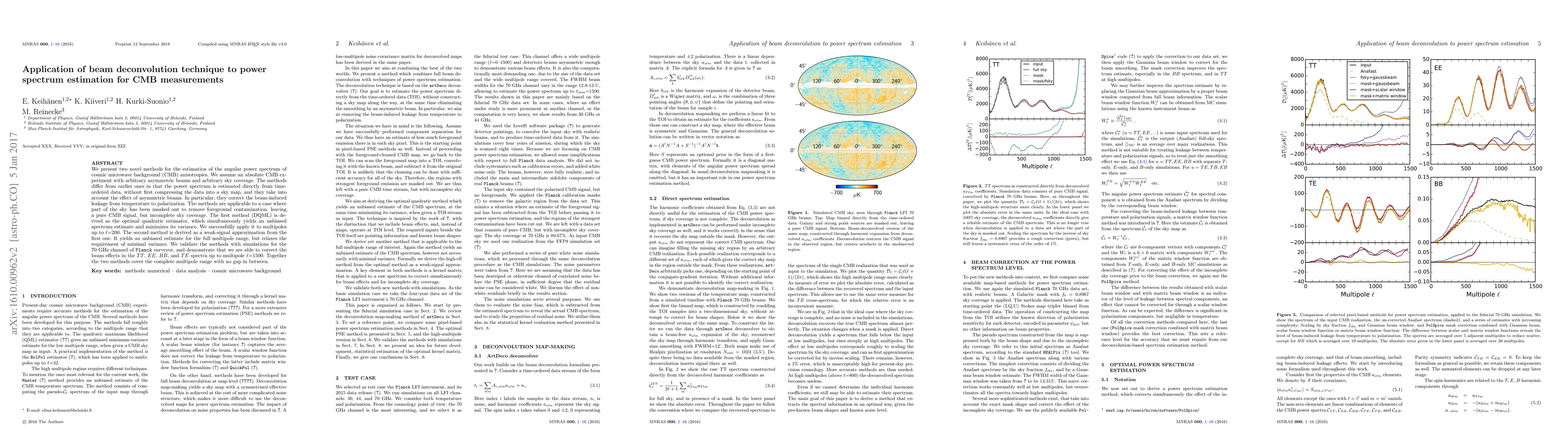 We present two novel methods for the estimation of the angular power spectrum of cosmic microwave background (CMB) anisotropies. We assume an absolute CMB experiment with arbitrary asymmetric beams and arbitrary sky coverage. The methods differ from earlier ones in that the power spectrum is estimated directly from time-ordered data, without first compressing the data into a sky map, and they take into account the effect of asymmetric beams. In particular, they correct the beam-induced leakage from temperature to polarization. The methods are applicable to a case where part of the sky has been masked out to remove foreground contamination, leaving a pure CMB signal, but incomplete sky coverage. The first method (DQML) is derived as the optimal quadratic estimator, which simultaneously yields an unbiased spectrum estimate and minimizes its variance. We successfully apply it to multipoles up to $\ell$=200. The second method is derived as a weak-signal approximation from the first one. It yields an unbiased estimate for the full multipole range, but relaxes the requirement of minimal variance. We validate the methods with simulations for the 70 GHz channel of {\tt Planck} surveyor, and demonstrate that we are able to correct the beam effects in the $TT$, $EE$, $BB$, and $TE$ spectra up to multipole $\ell$=1500. Together the two methods cover the complete multipole range with no gap in between.