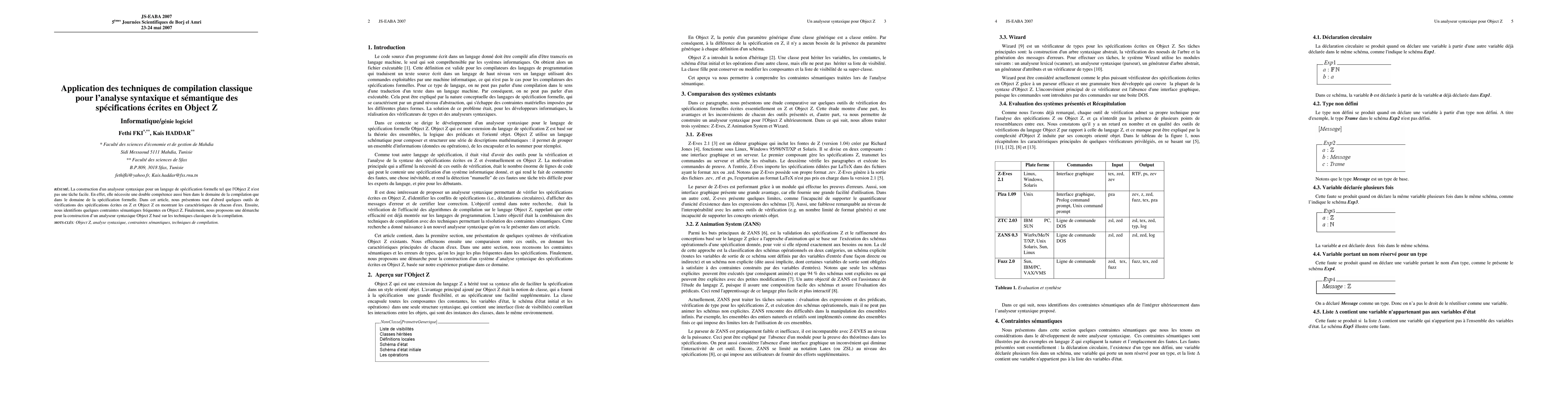 This paper presents tools for analyzing Object Z specifications and identifies common semantic constraints. It proposes a parser construction approach for Object Z using classical compilation techniques.