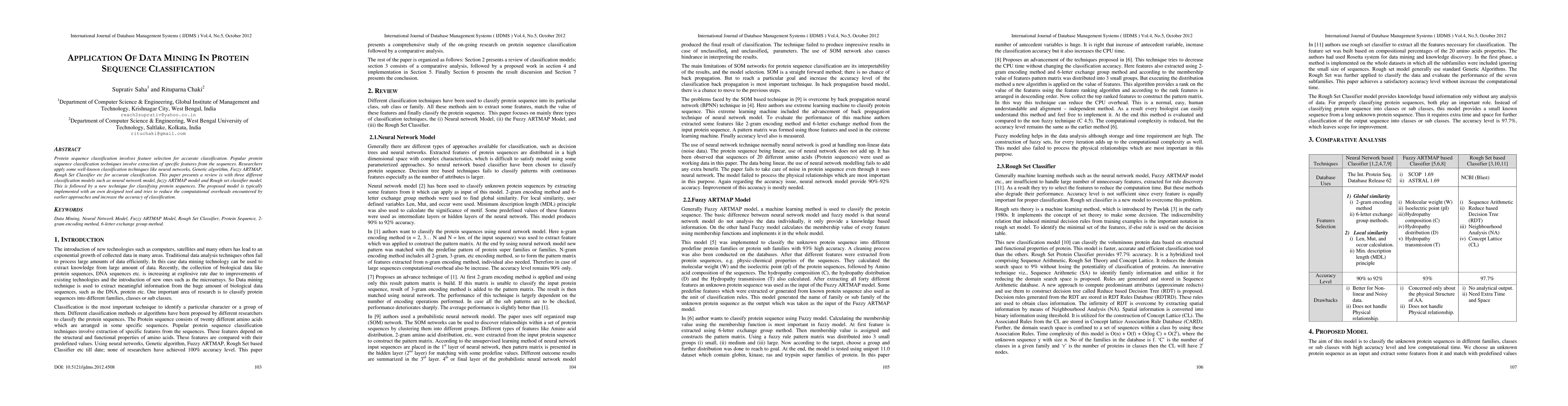 This paper reviews three established protein sequence classification models: neural networks, fuzzy ARTMAP, and Rough Set classifiers, and proposes a new technique to enhance classification accuracy while reducing computational overheads through a custom-designed tool.