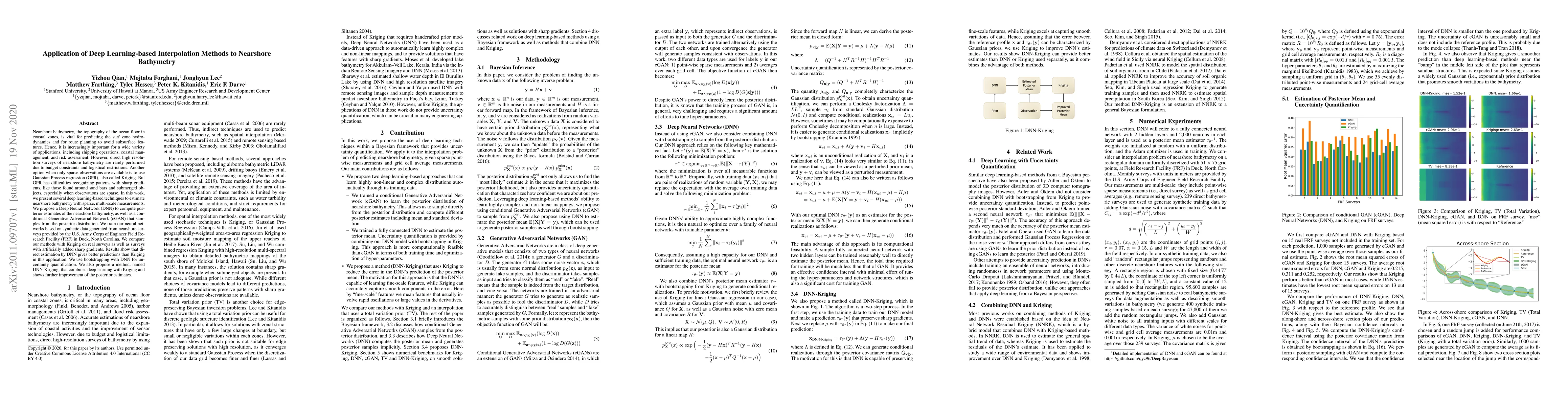 Researchers developed deep learning-based methods to estimate nearshore bathymetry with sparse measurements, outperforming traditional Kriging methods in predictions and uncertainty quantification.