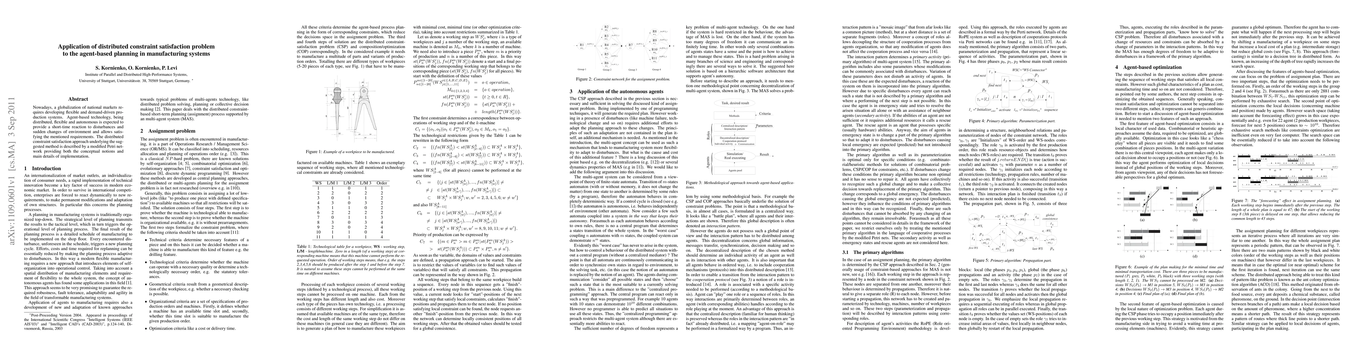 Nowadays, a globalization of national markets requires developing flexible and demand-driven production systems. Agent-based technology, being distributed, flexible and autonomous is expected to provide a short-time reaction to disturbances and sudden changes of environment and allows satisfying the mentioned requirements. The distributed constraint satisfaction approach underlying the suggested method is described by a modified Petri network providing both the conceptual notions and main details of implementation.