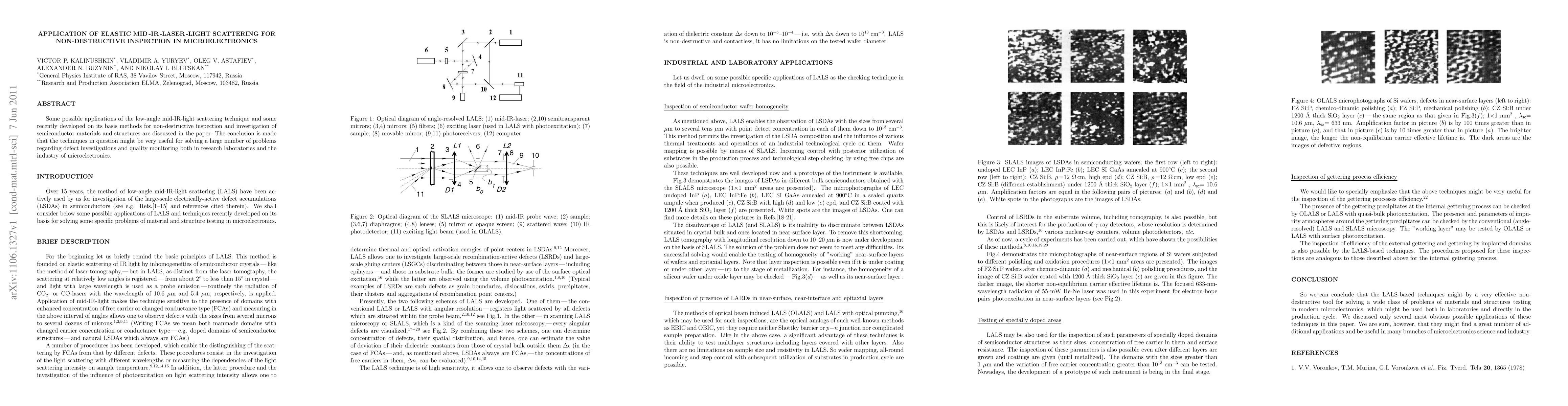 This paper explores the use of low-angle mid-IR-laser-light scattering for non-destructive inspection of semiconductor materials and structures in microelectronics. The findings suggest these techniques are highly effective for defect investigations and quality monitoring in both research and industrial settings.