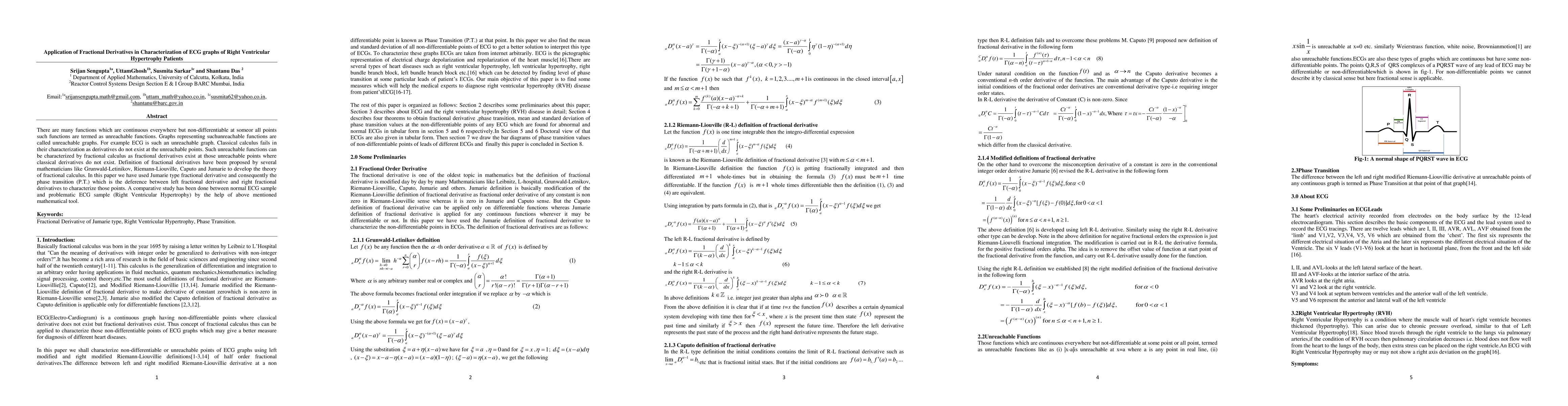 There are many functions which are continuous everywhere but non-differentiable at some or all points such functions are termed as unreachable functions. Graphs representing such unreachable functions are called unreachable graphs. For example, ECG is such an unreachable graph. Classical calculus fails in their characterization as derivatives do not exist at the unreachable points. Such unreachable functions can be characterized by fractional calculus as fractional derivatives exist at those unreachable points where classical derivatives do not exist. Definition of fractional derivatives has been proposed by several mathematicians like Grunwald-Letinikov, Riemann-Liouville, Caputo, and Jumarie to develop the theory of fractional calculus. In this paper, we have used Jumarie type fractional derivative and consequently the phase transition (P.T.) which is the difference between left fractional derivative and right fractional derivatives to characterize those points. A comparative study has been done between normal ECG sample and problematic ECG sample (Right Ventricular Hypertrophy) by the help of the above mentioned mathematical tool.