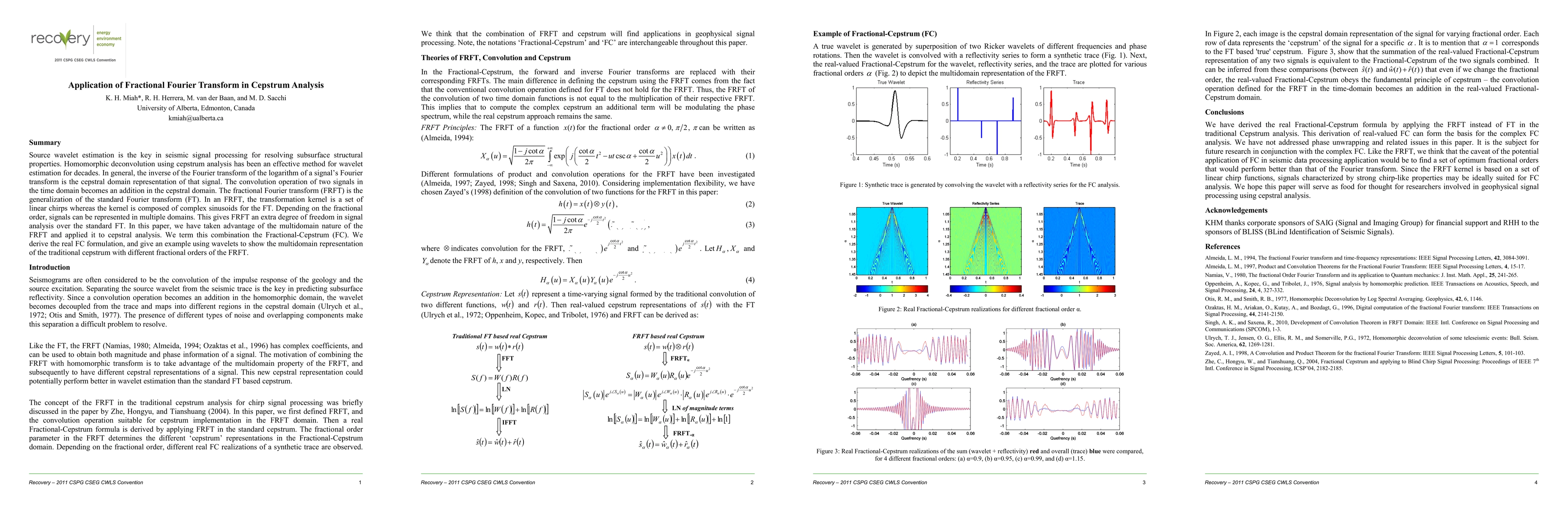 This paper explores the application of the fractional Fourier transform (FRFT) in cepstrum analysis for seismic signal processing, introducing the Fractional-Cepstrum (FC) to leverage FRFT's multidomain representation for more effective source wavelet estimation. The study demonstrates the FC's ability to represent signals in various domains using different fractional orders.