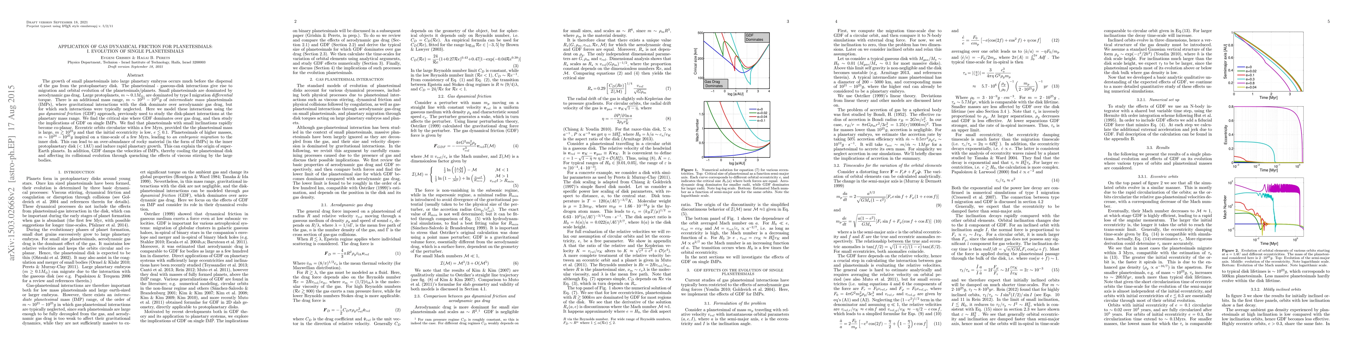 This paper models the gas dynamical friction (GDF) on intermediate mass planetesimals (IMPs) in a protoplanetary disk, finding that GDF leads to rapid co-planarization, orbital circularization, and inspiral of IMPs, potentially explaining the formation of super-Earth planets and influencing the collisional evolution of the planetesimal disk.
