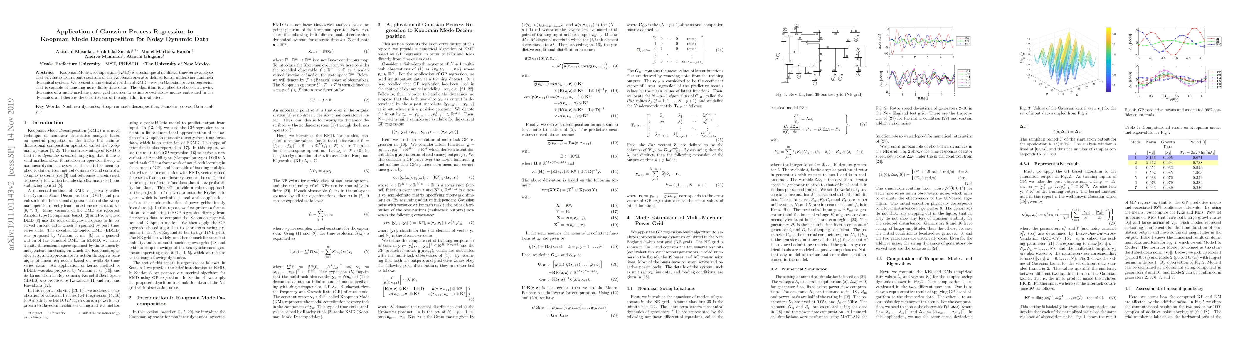This paper proposes a Gaussian process regression-based algorithm for Koopman Mode Decomposition to analyze noisy dynamic data, demonstrating its effectiveness through the analysis of short-term swing dynamics in a multi-machine power grid.