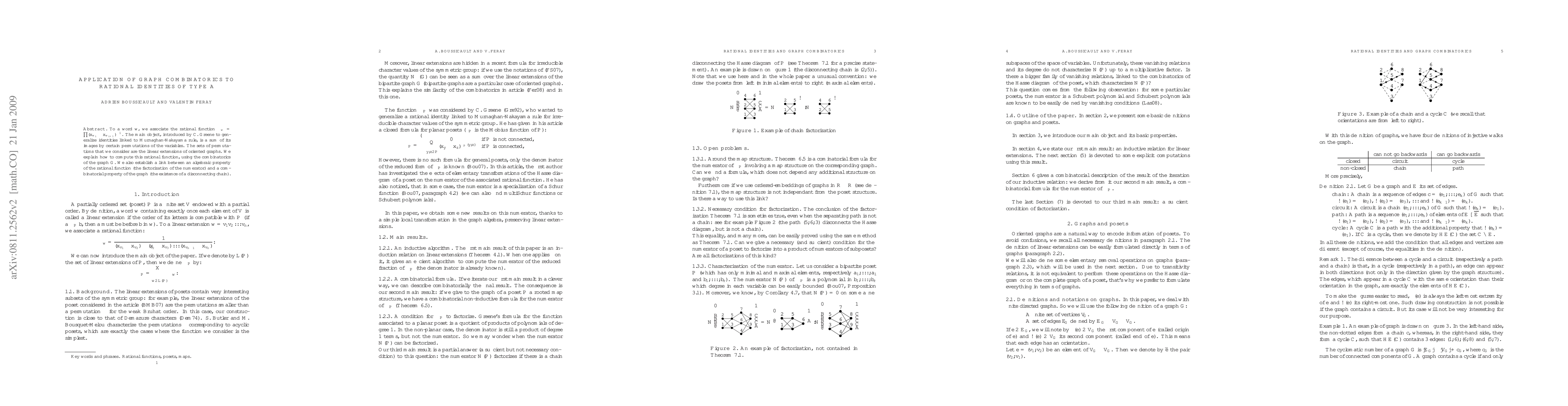 To a word $w$, we associate the rational function $\Psi_w = \prod (x_{w_i} - x_{w_{i+1}})^{-1}$. The main object, introduced by C. Greene to generalize identities linked to Murnaghan-Nakayama rule, is a sum of its images by certain permutations of the variables. The sets of permutations that we consider are the linear extensions of oriented graphs. We explain how to compute this rational function, using the combinatorics of the graph $G$. We also establish a link between an algebraic property of the rational function (the factorization of the numerator) and a combinatorial property of the graph (the existence of a disconnecting chain).