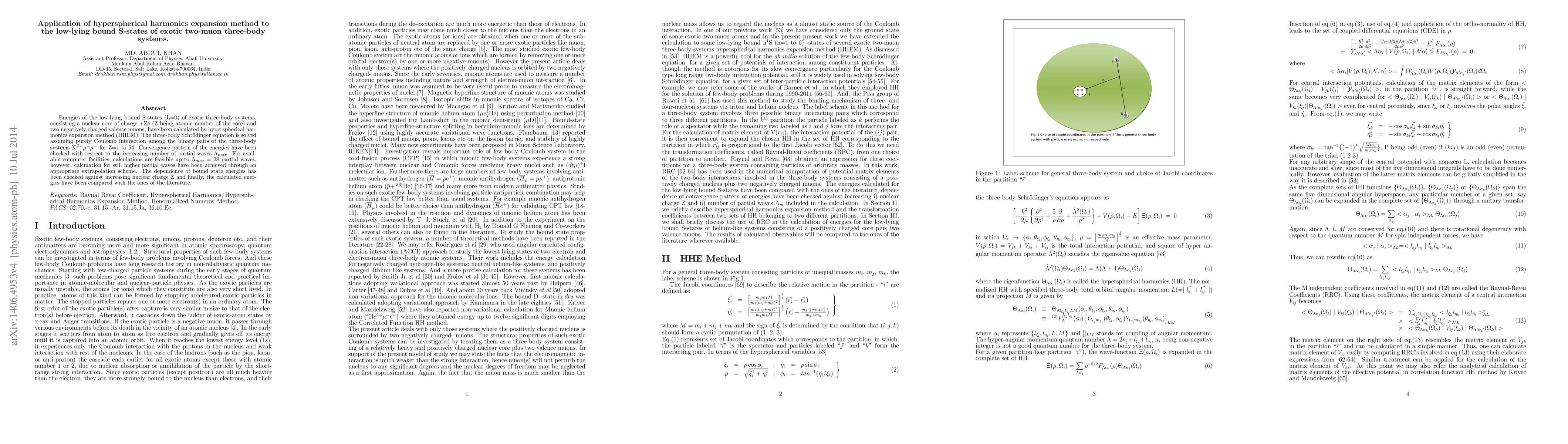 Researchers used hyperspherical harmonics expansion method to calculate energies of low-lying bound S-states in exotic two-muon three-body systems with increasing nuclear charge, comparing results with literature values.