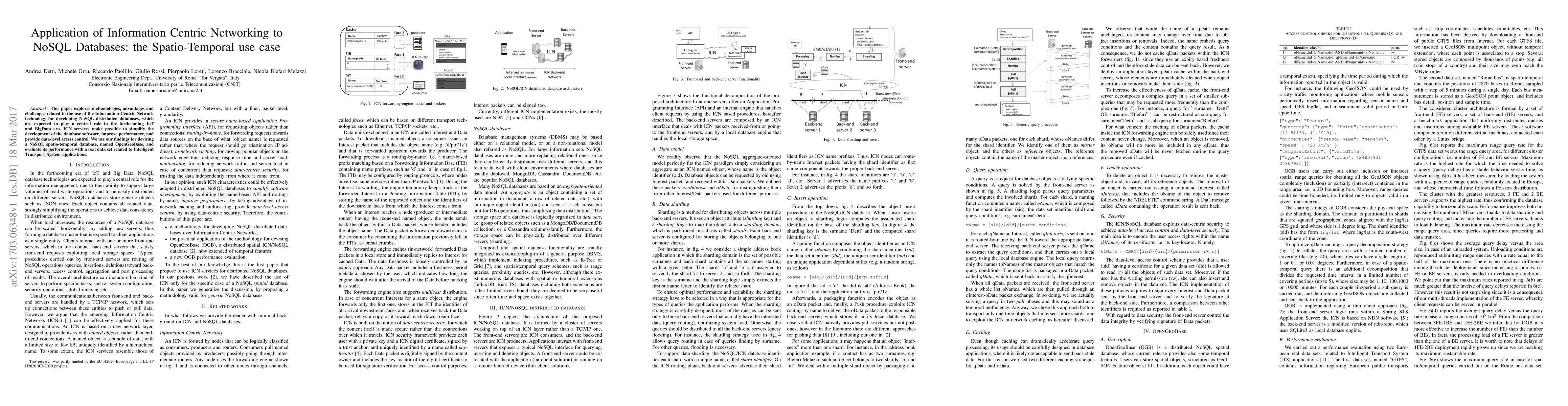 This paper investigates the application of Information Centric Networking (ICN) to enhance NoSQL distributed databases, focusing on performance improvements and data-level access control. It introduces OpenGeoBase, a NoSQL spatio-temporal database, and evaluates its performance in Intelligent Transport System applications.