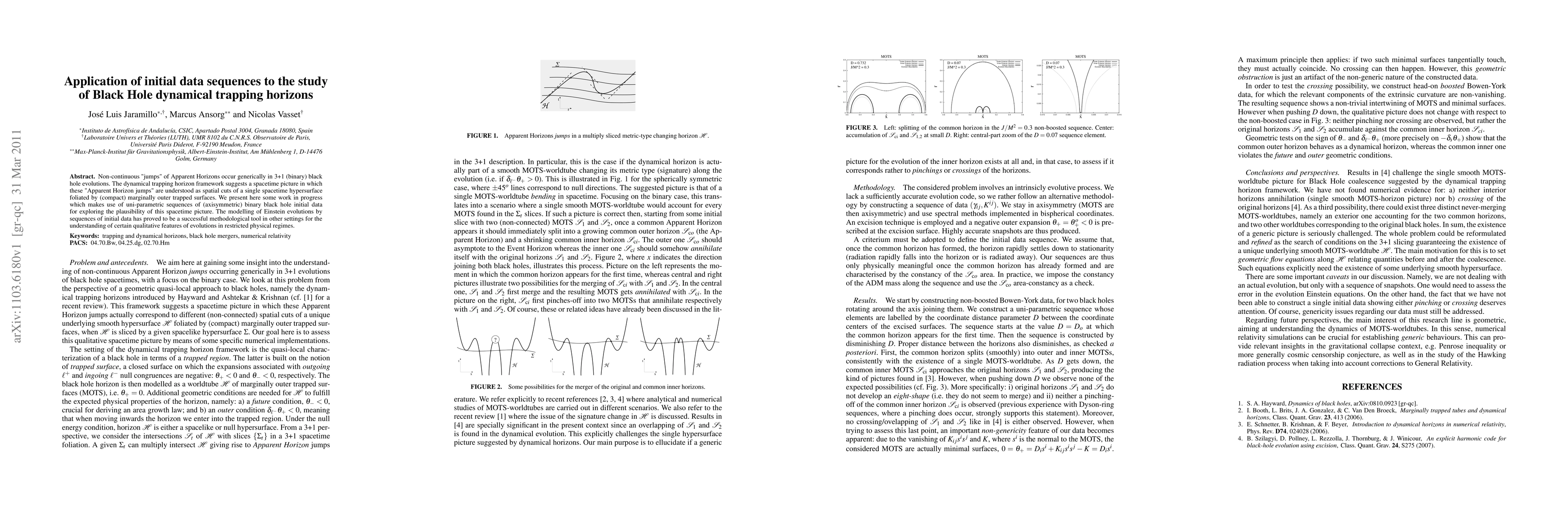 Non-continuous "jumps" of Apparent Horizons occur generically in 3+1 (binary) black hole evolutions. The dynamical trapping horizon framework suggests a spacetime picture in which these "Apparent Horizon jumps" are understood as spatial cuts of a single spacetime hypersurface foliated by (compact) marginally outer trapped surfaces. We present here some work in progress which makes use of uni-parametric sequences of (axisymmetric) binary black hole initial data for exploring the plausibility of this spacetime picture. The modelling of Einstein evolutions by sequences of initial data has proved to be a successful methodological tool in other settings for the understanding of certain qualitative features of evolutions in restricted physical regimes.