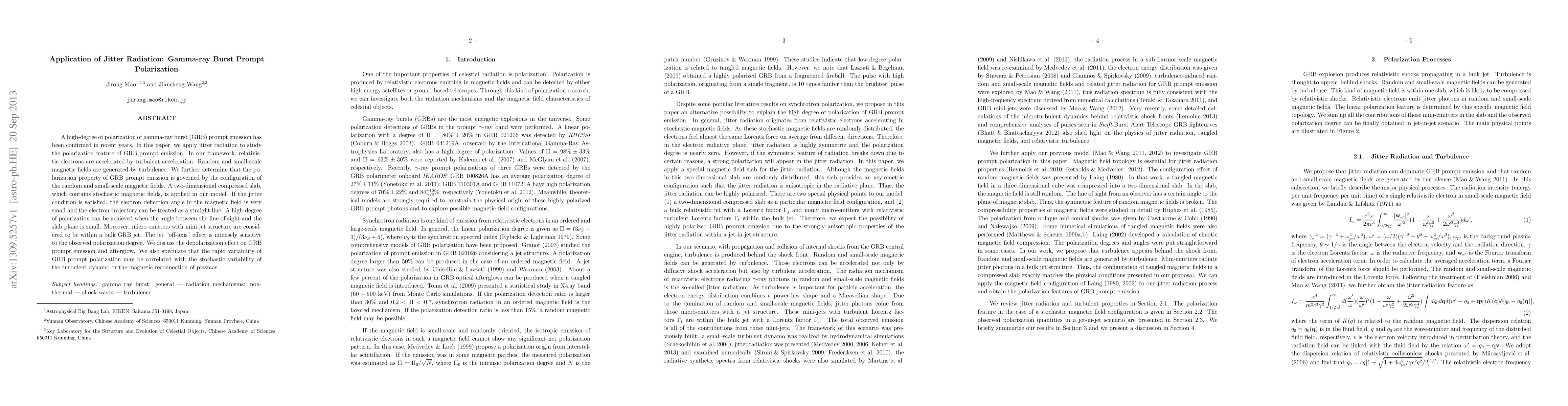 This paper explores the polarization features of gamma-ray burst (GRB) prompt emission using jitter radiation, showing that the degree of polarization is influenced by the configuration of small-scale magnetic fields generated by turbulence. The study finds that high polarization is achievable when the line of sight is close to the slab plane, and discusses the "off-axis" effect and potential correlations with turbulent dynamo variability.