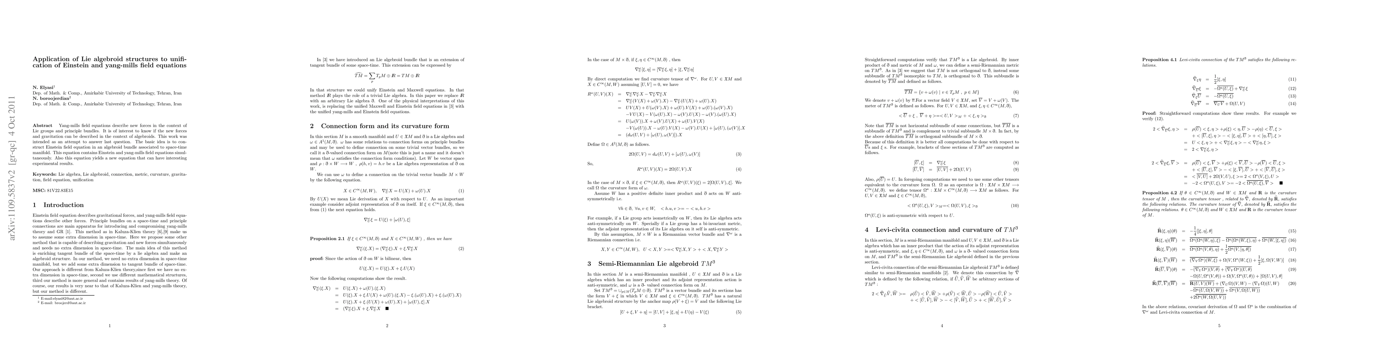 This paper explores the unification of Einstein's general relativity and Yang-Mills field equations using Lie algebroid structures. It constructs a unified field equation within an algebroid bundle associated with the space-time manifold, which simultaneously encapsulates both Einstein and Yang-Mills equations and potentially yields new experimentally verifiable results.