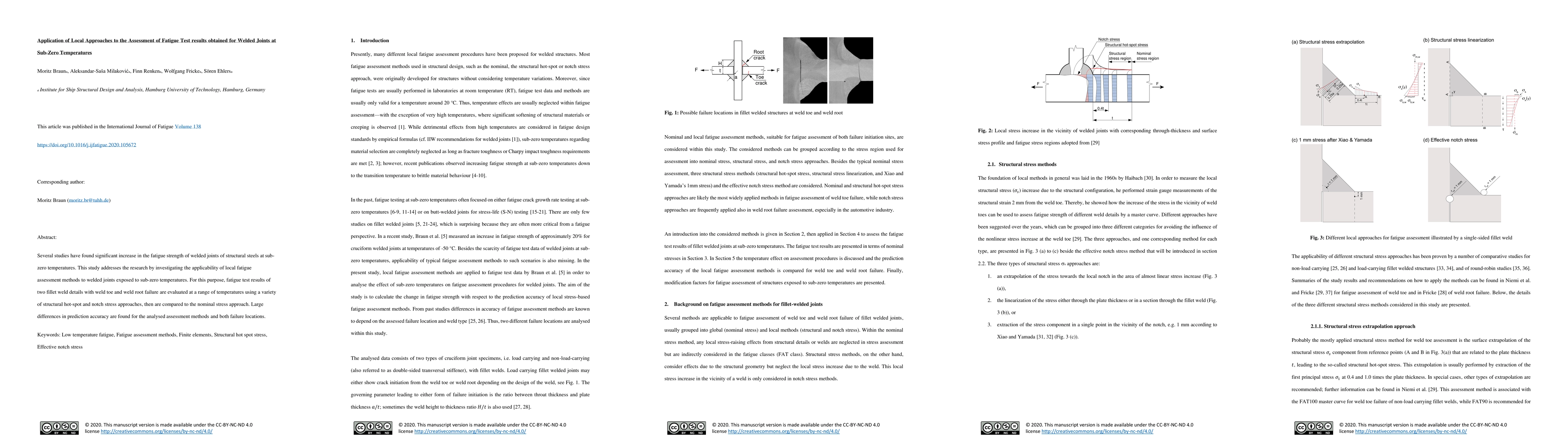 Several studies have found significant increase in the fatigue strength of welded joints of structural steels at sub-zero temperatures. This study addresses the research by investigating the applicability of local fatigue assessment methods to welded joints exposed to sub-zero temperatures. For this purpose, fatigue test results of two fillet weld details with weld toe and weld root failure are evaluated at a range of temperatures using a variety of structural hot-spot and notch stress approaches, then are compared to the nominal stress approach. Large differences in prediction accuracy are found for the analysed assessment methods and both failure locations.