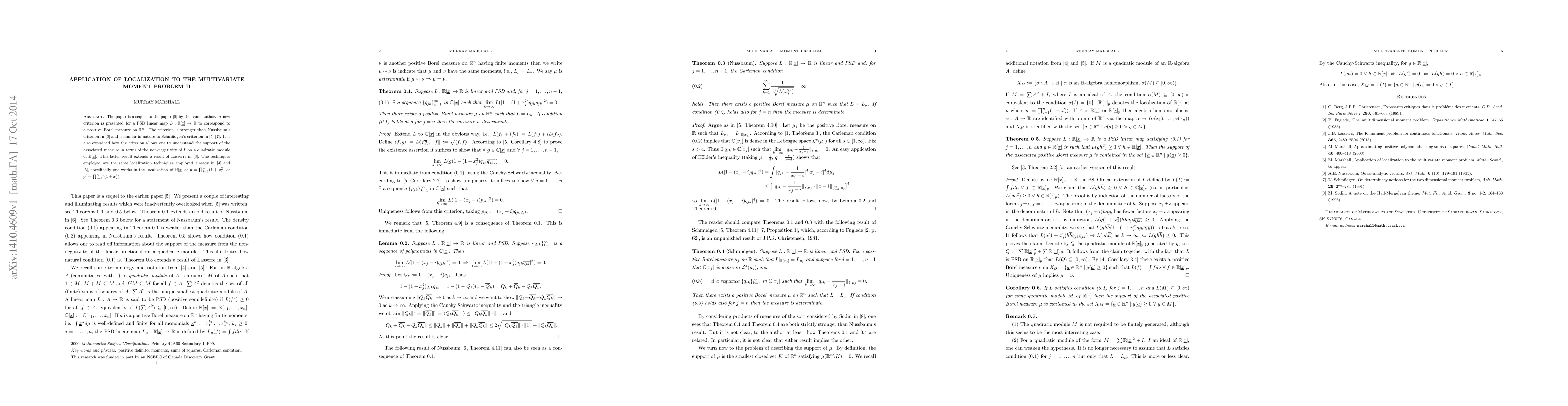 The paper is a sequel to the paper "Application of localization to the multivariate moment problem" by the same author. A new criterion is presented for a positive semidefinite linear functional on the real polynomial algebra to correspond to a positive Borel measure on real n-space. The criterion is stronger than Nussbaum's criterion and is similar in nature to a criterion of Schmudgen. It is also explained how the criterion allows one to understand the support of the associated measure in terms of the non-negativity of the linear functional on a quadratic module of the real polynomial algebra. This latter result extends a result of Lasserre. The techniques employed are the same localization techniques employed already in two earlier papers by the same author.