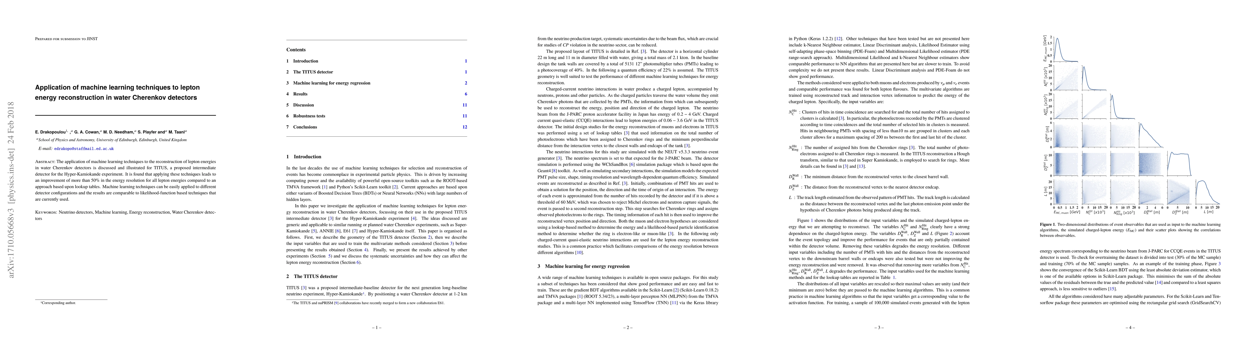 This paper explores the use of machine learning techniques to enhance lepton energy reconstruction in water Cherenkov detectors, specifically for the TITUS detector in the Hyper-Kamiokande experiment, achieving over 50% improvement in energy resolution compared to traditional lookup tables. These techniques show comparable results to likelihood-function methods and are adaptable to various detector setups.