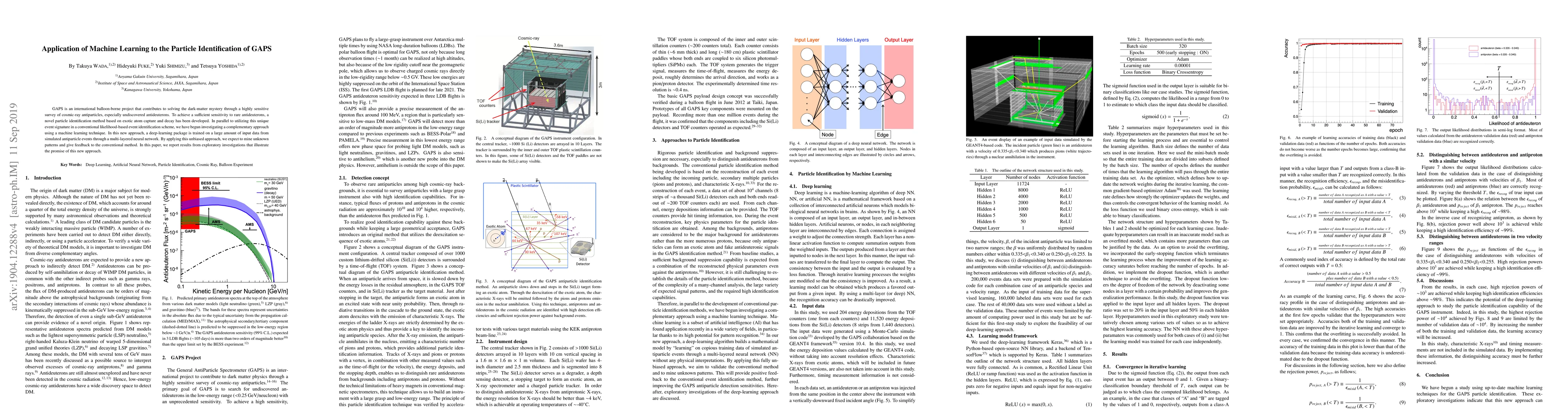 GAPS is an international balloon-borne project that contributes to solving the dark-matter mystery through a highly sensitive survey of cosmic-ray antiparticles, especially undiscovered antideuterons. To achieve a sufficient sensitivity to rare antideuterons, a novel particle identification method based on exotic atom capture and decay has been developed. In parallel to utilizing this unique event signature in a conventional likelihood-based event identification scheme, we have begun investigating a complementary approach using a machine learning technique. In this new approach, a deep-learning package is trained on a large amount of input data from simulated antiparticle events through a multi-layered neural network. By applying this unbiased approach, we expect to mine unknown patterns and give feedback to the conventional method. In this paper, we report results from exploratory investigations that illustrate the promise of this new approach.