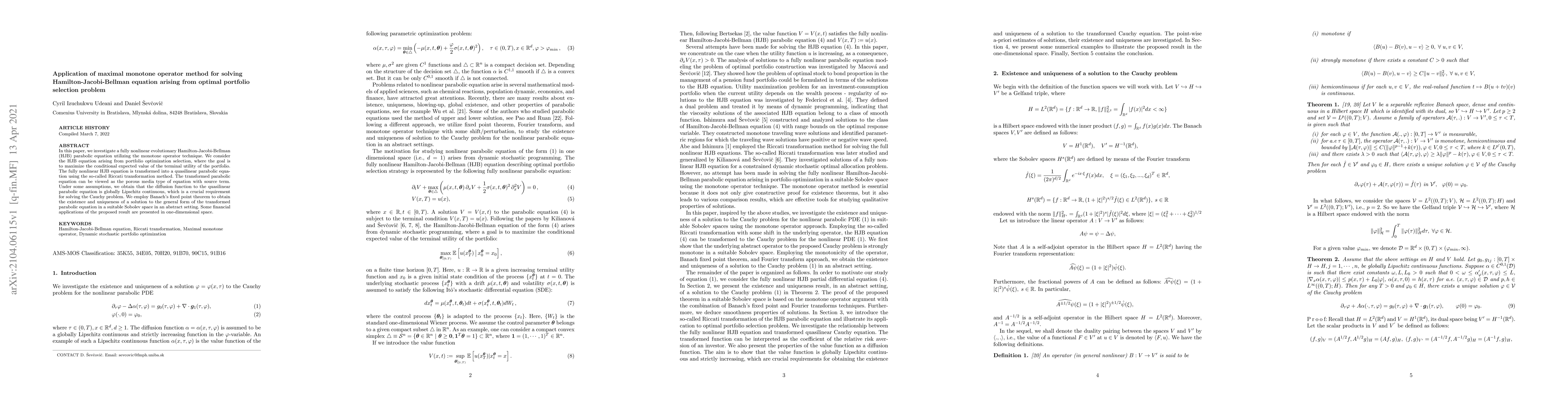 Researchers developed a method to solve a complex equation used in portfolio optimization, using a transformation technique to make it solvable. They proved the existence and uniqueness of a solution, paving the way for applications in finance.