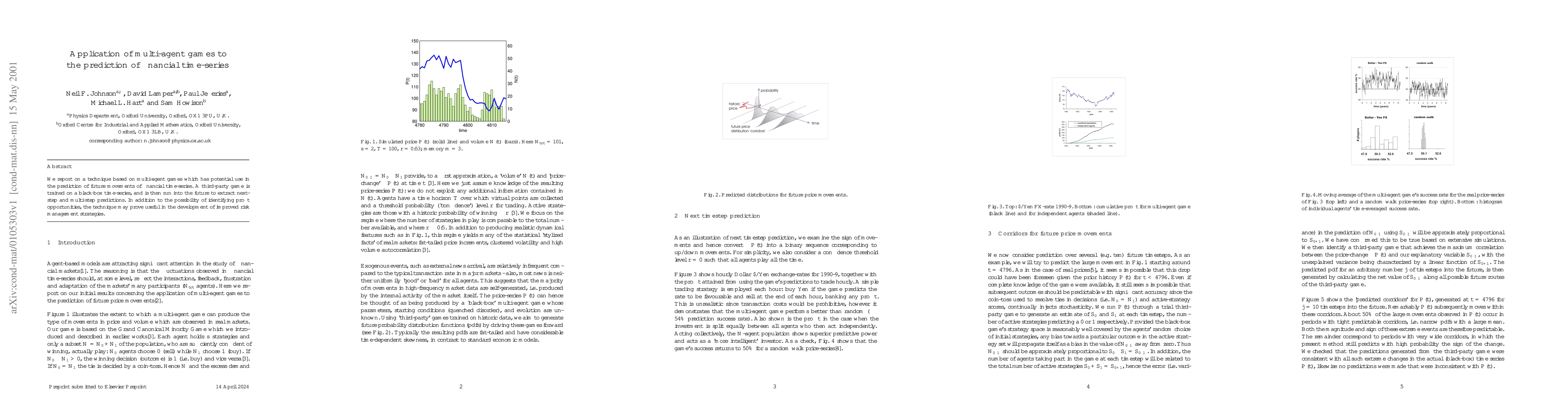 We report on a technique based on multi-agent games which has potential use in the prediction of future movements of financial time-series. A third-party game is trained on a black-box time-series, and is then run into the future to extract next-step and multi-step predictions. In addition to the possibility of identifying profit opportunities, the technique may prove useful in the development of improved risk management strategies.