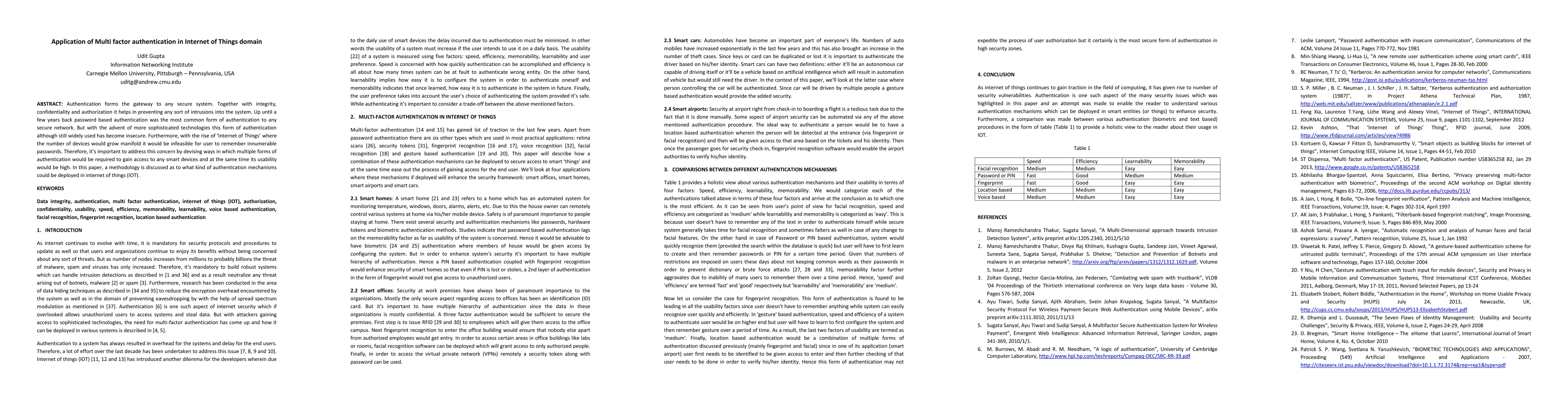 This paper explores the application of multi-factor authentication in the Internet of Things (IoT) to enhance security while maintaining usability. It proposes a methodology for deploying multiple authentication mechanisms to secure smart devices amidst the growing number of IoT devices.