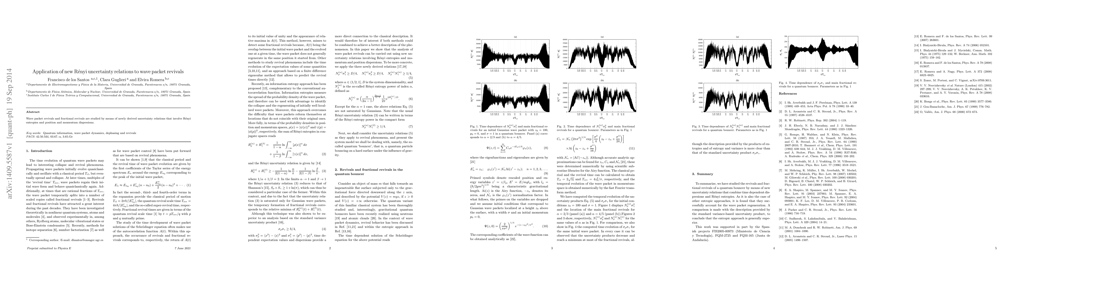 Summary: The paper explores wave packet revivals using newly derived Rényi uncertainty relations that incorporate Rényi entropies and dispersions in position and momentum, providing insights into fractional revivals.