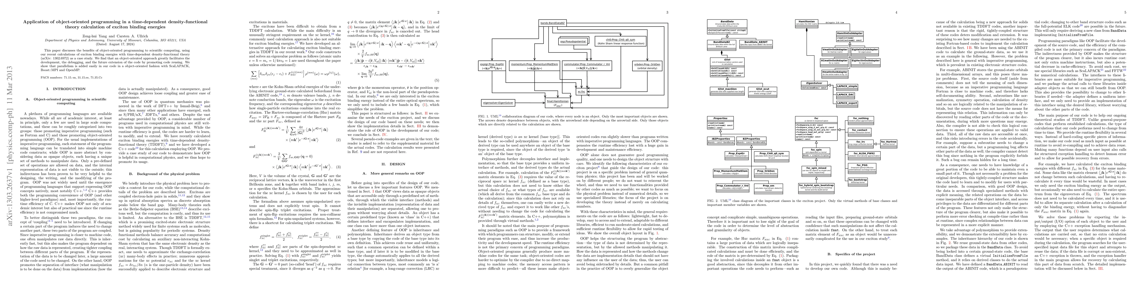 This paper discusses the benefits of object-oriented programming to scientific computing, using our recent calculations of exciton binding energies with time-dependent density-functional theory (arXiv: 1302.6972) as a case study. We find that an object-oriented approach greatly facilitates the development, the debugging, and the future extension of the code by promoting code reusing. We show that parallelism is added easily in our code in a object-oriented fashion with ScaLAPACK, Boost::MPI and OpenMP.