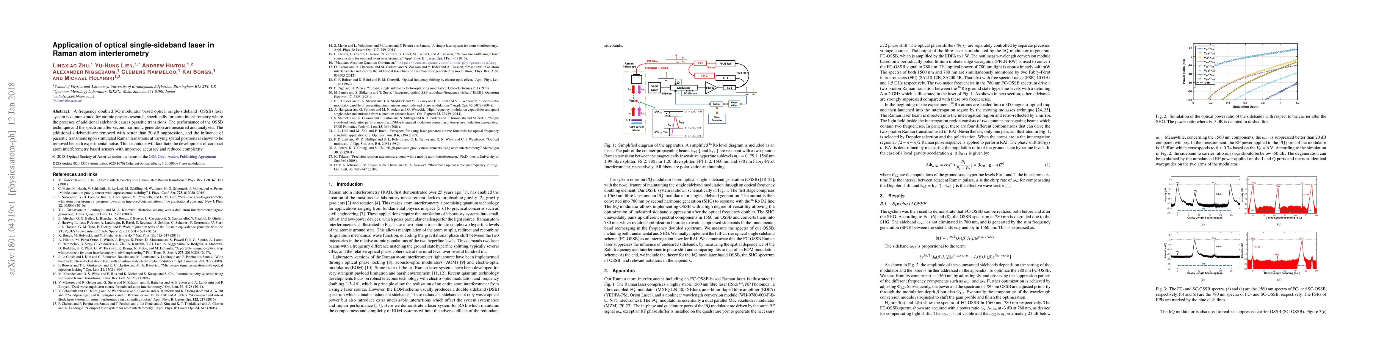 This paper demonstrates an optical single-sideband (OSSB) laser system using a frequency doubled I/Q modulator for Raman atom interferometry, showing suppression of parasitic transitions by over 20 dB, thus enhancing accuracy and simplifying compact atom interferometry sensors.