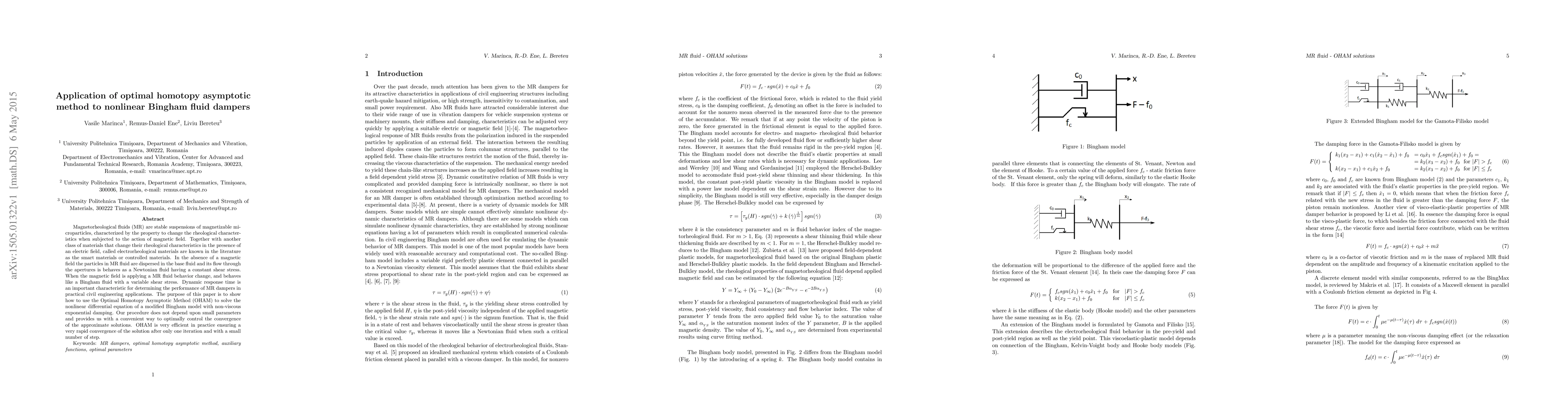 This paper applies the Optimal Homotopy Asymptotic Method (OHAM) to solve the nonlinear differential equation of a modified Bingham model for magnetorheological fluid dampers, demonstrating rapid convergence and efficient control of the solution without reliance on small parameters.