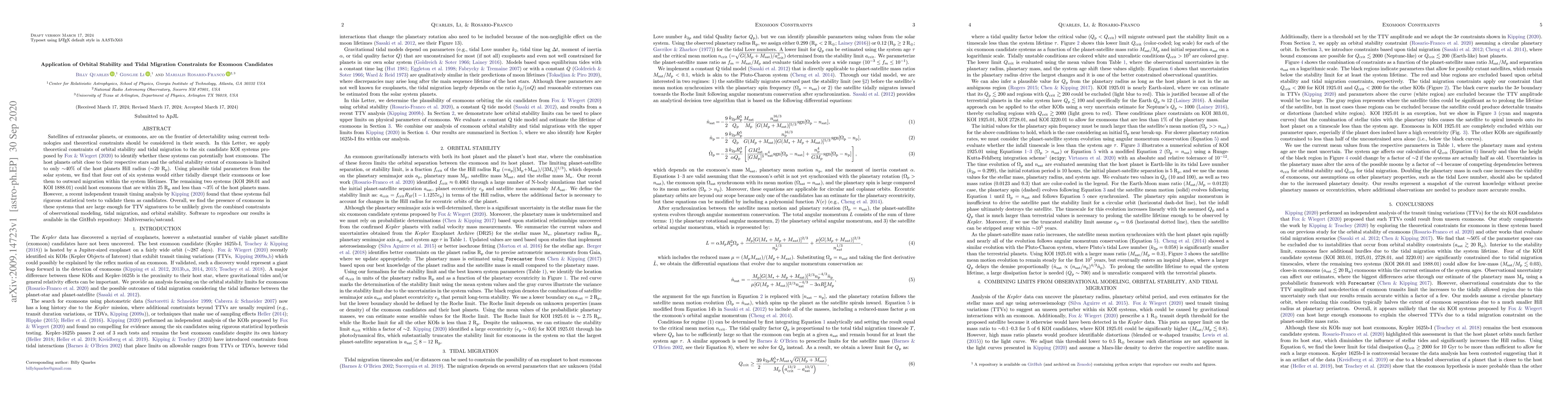 Researchers used orbital stability and tidal migration constraints to analyze six exomoon candidate systems, finding that only two could potentially host large enough moons for TTV signatures to be detectable.