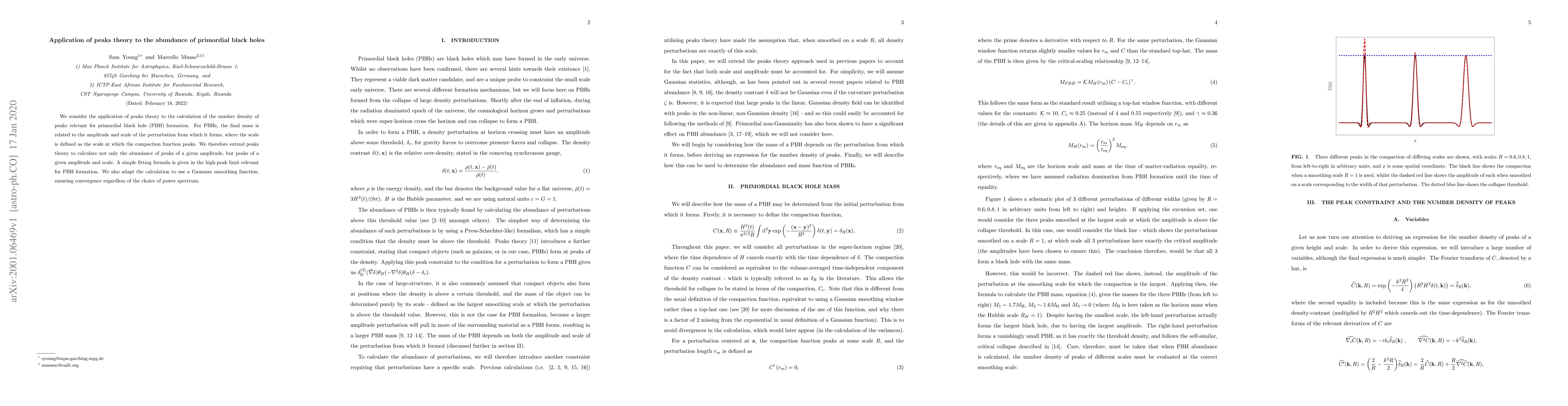 We consider the application of peaks theory to the calculation of the number density of peaks relevant for primordial black hole (PBH) formation. For PBHs, the final mass is related to the amplitude and scale of the perturbation from which it forms, where the scale is defined as the scale at which the compaction function peaks. We therefore extend peaks theory to calculate not only the abundance of peaks of a given amplitude, but peaks of a given amplitude and scale. A simple fitting formula is given in the high-peak limit relevant for PBH formation. We also adapt the calculation to use a Gaussian smoothing function, ensuring convergence regardless of the choice of power spectrum.