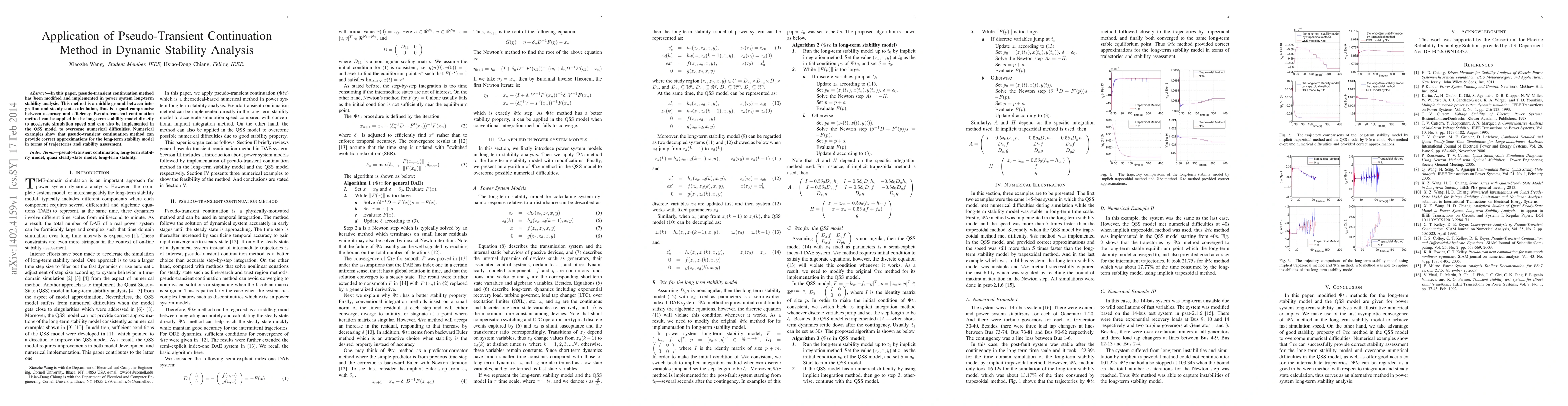 The paper presents a modified Ψtc method tailored for power system long-term stability analysis, addressing both efficiency and numerical stability issues.