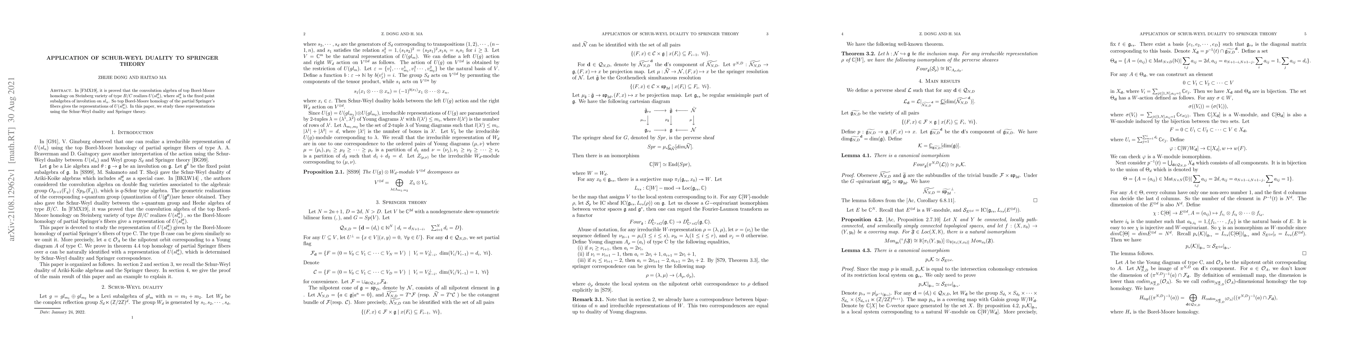 In \cite{FMX19}, it is proved that the convolution algebra of top Borel-Moore homology on Steinberg variety of type $B/C$ realizes $U(sl_n^{\theta})$, where $sl_{n}^{\theta}$ is the fixed point subalgebra of involution on $sl_n$. So top Borel-Moore homology of the partial Springer's fibers gives the representations of $U(sl_n^{\theta})$. In this paper, we study these representations using the Schur-Weyl duality and Springer theory.