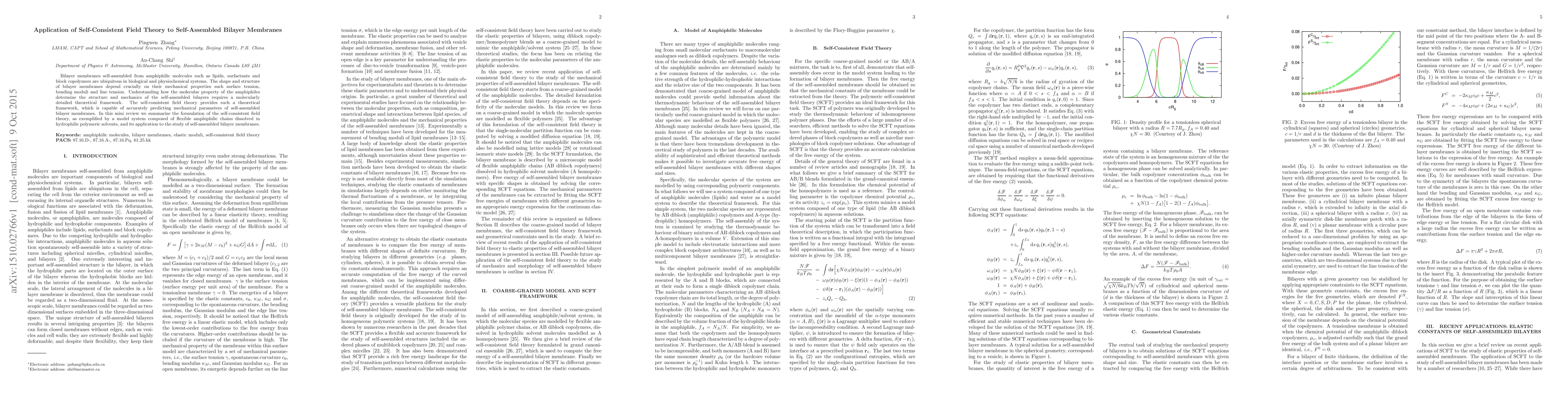 Bilayer membranes self-assembled from amphiphilic molecules such as lipids, surfactants and block copolymers are ubiquitous in biological and physiochemical systems. The shape and structure of bilayer membranes depend crucially on their mechanical properties such surface tension, bending moduli and line tension. Understanding how the molecular property of the amphiphiles determine the structure and mechanics of the self-assembled bilayers requires a molecularly detailed theoretical framework. The self-consistent field theory provides such a theoretical framework, which is capable of accurately predicting mechanical parameters of self-assembled bilayer membranes. In this mini review we summarize the formulation of the self-consistent field theory, as exemplified by a model system composed of flexible amphiphilic chains dissolved in hydrophilic polymeric solvents, and its application to the study of self-assembled bilayer membranes.