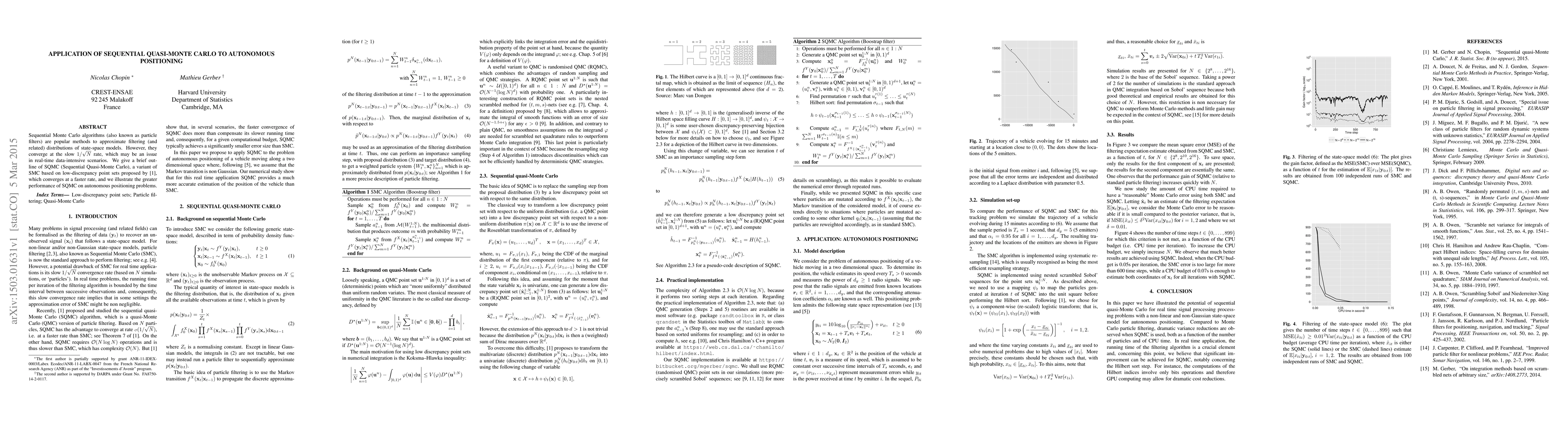 This paper introduces Sequential Quasi-Monte Carlo (SQMC), a faster-converging variant of particle filters for state-space models, based on low-discrepancy point sets, and demonstrates its improved performance in autonomous positioning tasks compared to traditional methods.
